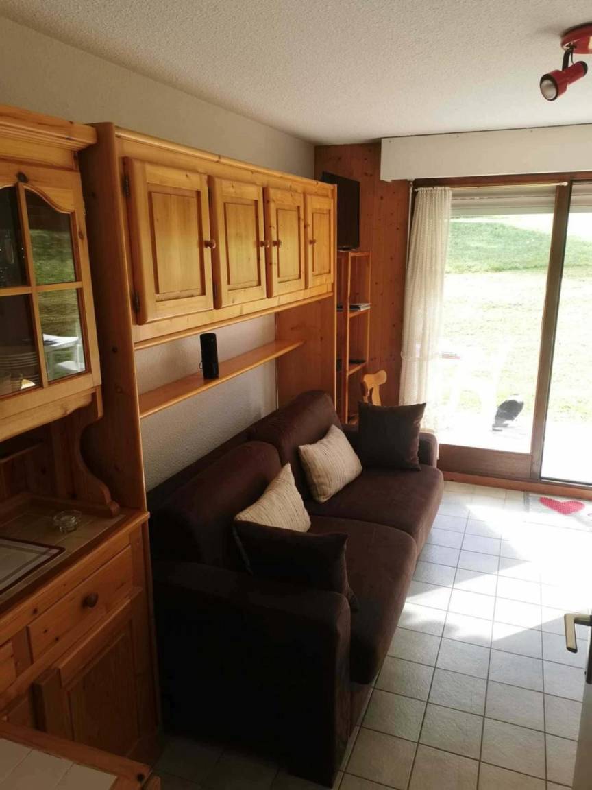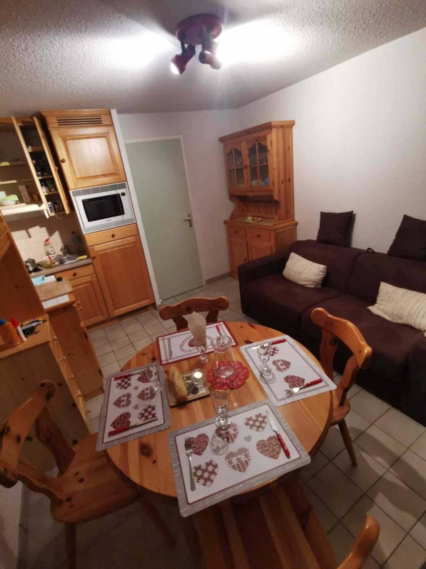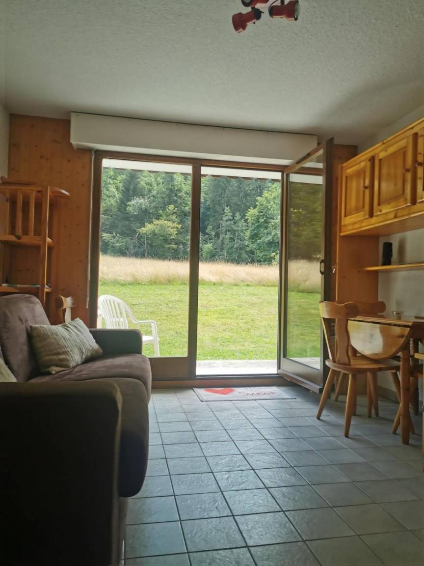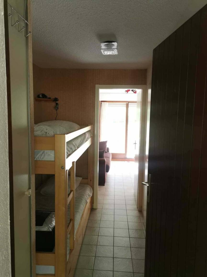 Fläche von ungefähr 20 m². Erdgeschoss. Orientierung : Süd. Wohnzimmer mit BZ-Sofas (140*190). offener Schlafbereich mit 2 Stockbetten. Kochnische mit Fonduegerät, Raclettegerät, Wasserkocher, Kaffeemaschine (à filtre), kleiner Backofen mit Mikrowellenfunktion, Toaster, Geschirrspülmaschine, 2 elektronische Herdplatten, Kühlschrank. Badezimmer. separates WC. Terrasse mit Gartentisch und -stühle. Die oberen Betten sind nicht für Kinder unter 6 Jahren geeignet.