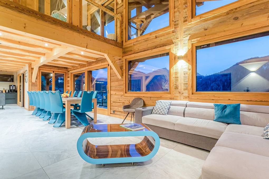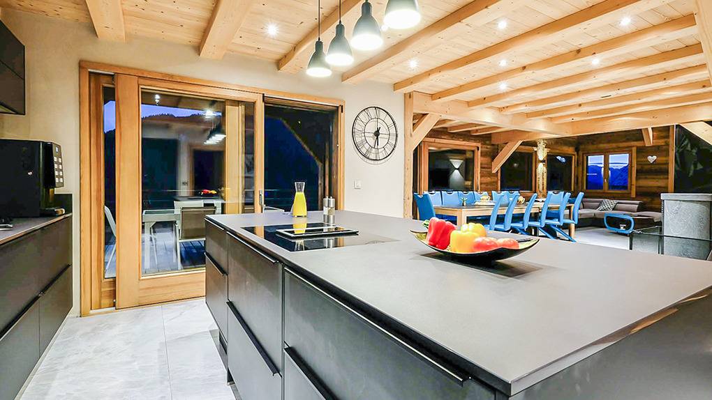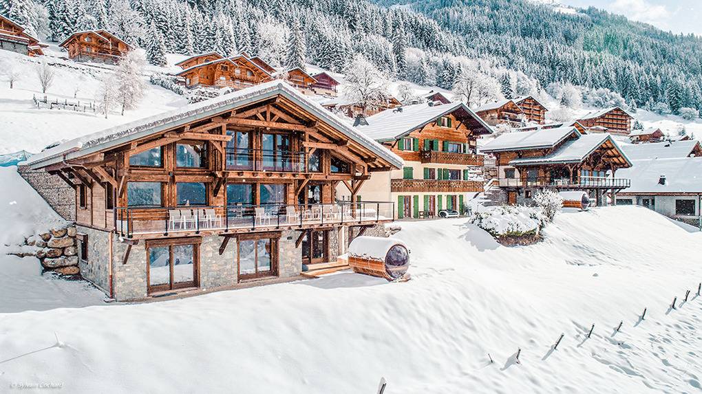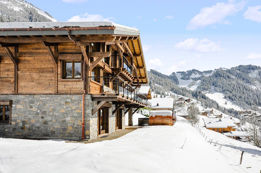 Ort: Châtel. Hervorragende, sonnige Lage im Ortsteil Petit-Châtel. Traumhafter Blick auf Châtel, die Pisten und das Abondance-Tal. Sessellift nur 100 m! Skibus 50 m. Restaurant 150 m. Ortsmitte 1,2 km.
