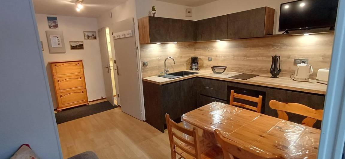 Die Residenz Chaumière des Neiges besteht aus mehreren Gebäuden im Stadtteil Béchigne. Alle bieten einen unverbauten Blick auf die Umgebung und die darunterliegende Stadt Châtel. Die Super-Châtel-Seilbahn ist 1 km entfernt. Auf Wunsch verkehrt in der Nähe ein Shuttlebus. Das Zentrum von Châtel und seine Geschäfte sind 800 m entfernt. Fläche von ungefähr 23 m². Erdgeschoss. Orientierung : Süd. Wohnzimmer mit 2 Stockbetten. Schlafbereich mit Doppelbett (140*190). Küche mit Fonduegerät, Raclettegerät, Wasserkocher, Kaffeemaschine (filtres), kleiner Backofen mit Mikrowellenfunktion, Toaster, 2 elektronische Herdplatten, Kühlschrank. Waschräume. separates WC. Balkon. Die oberen Betten sind nicht für Kinder unter 6 Jahren geeignet.