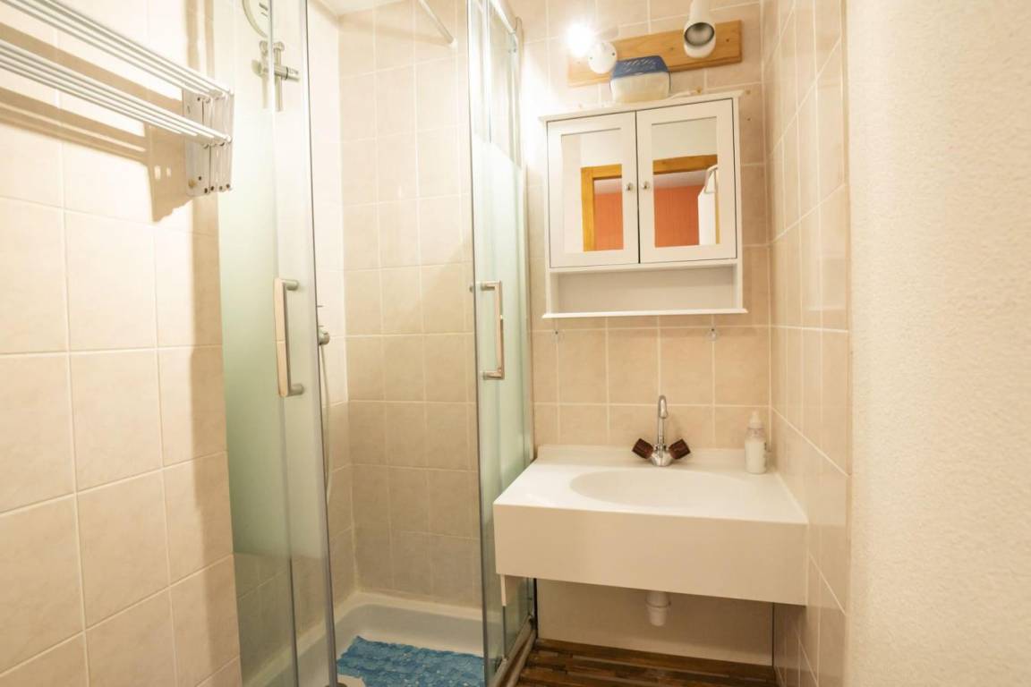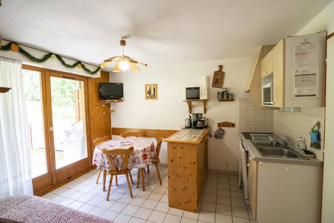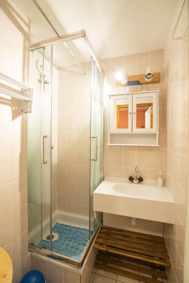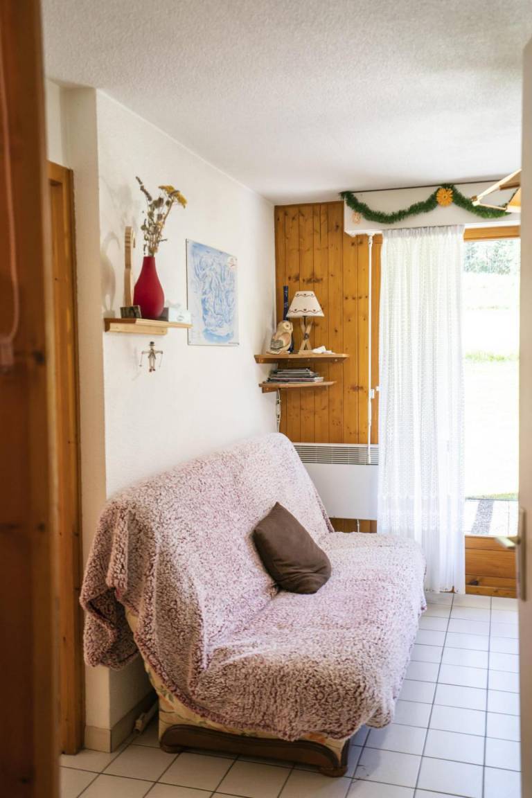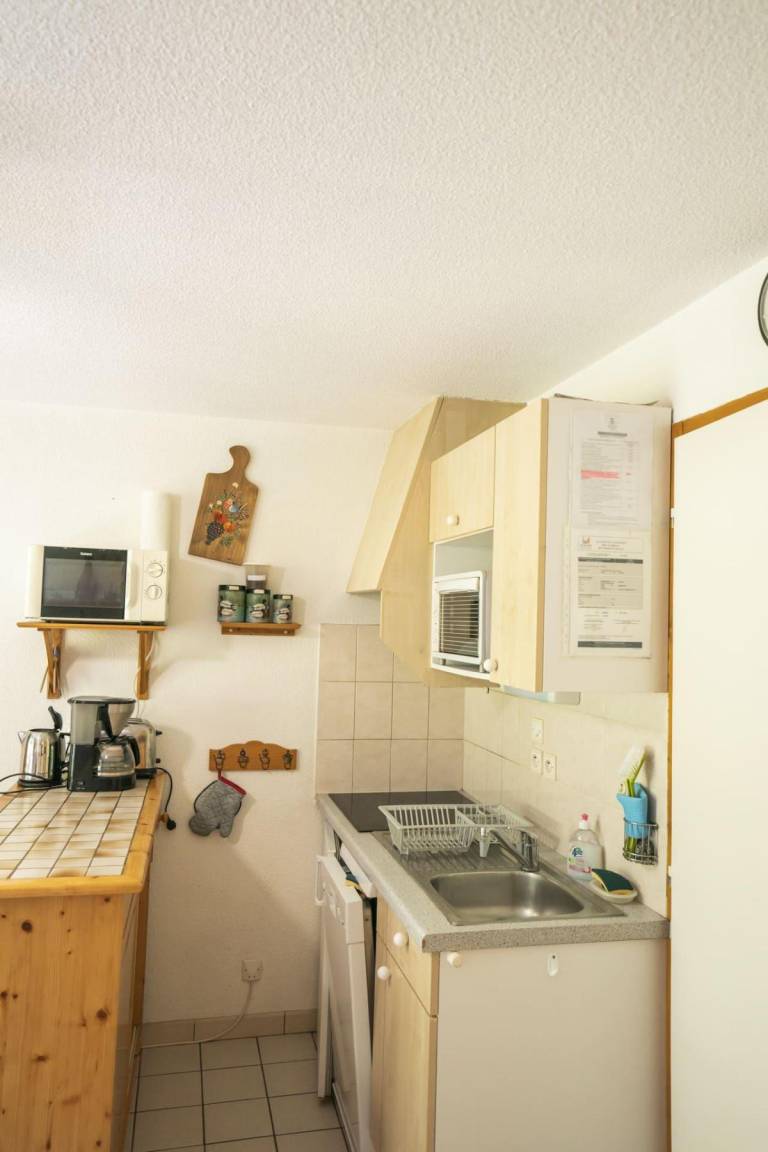 Fläche von ungefähr 35 m². Erdgeschoss. Orientierung : Süd. Wohnzimmer mit Klappschlafcouch (140*190). 2 Schlafzimmer mit Doppelbett (140*190). offener Schlafbereich mit 2 Stockbetten. Kochnische mit Kaffeemaschine (filtre), Backofen, Geschirrspülmaschine, Mikrowellenherd, 2 Herdplatten, Kühlschrank. Badezimmer mit Dusche. separates WC. Terrasse. Die oberen Betten sind nicht für Kinder unter 6 Jahren geeignet.
