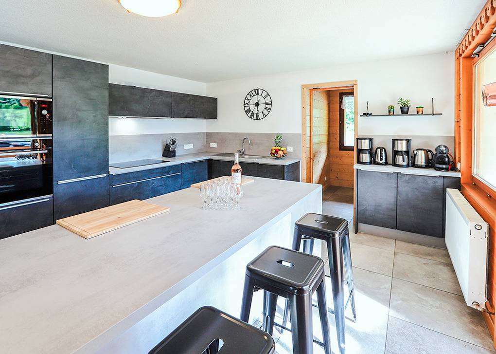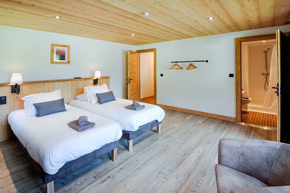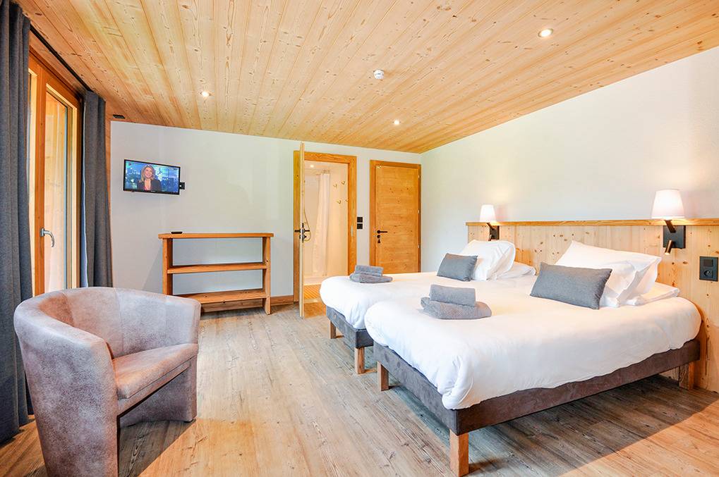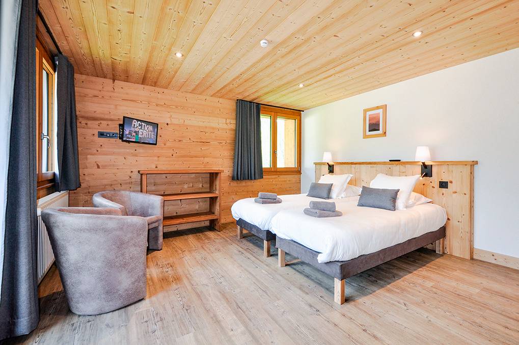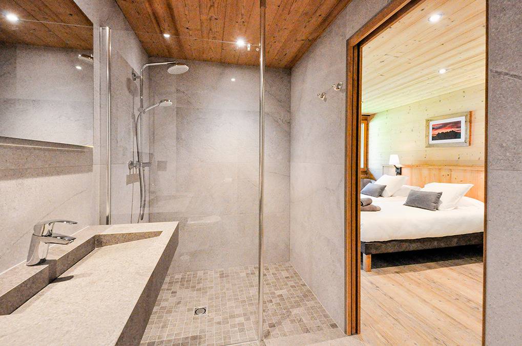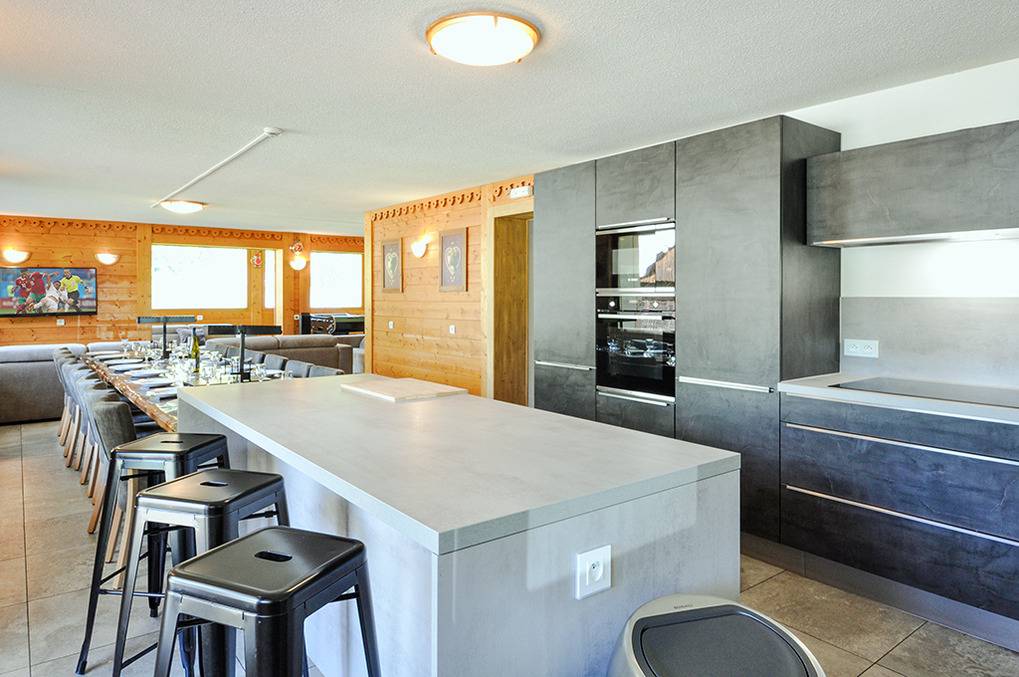F 016.035 Chaletwohnung 10-15 Pers.: 8-Zimmerwohnung mit 300 qm Wohnfläche über zwei Etagen. Parterre: Großzügiger Wohnraum (100 qm) mit Sitzecke, Smart/Sat-TV, Billard, Kicker, Esstischen, Lounge-Ecke mit schönem Blick auf die Berge, gut ausgestatteter Küche (Backofen, Mikrowelle, Spülmaschine, Tiefkühlschrank). Separates WC. Vom Wohnraum aus Treppe in die 1. Etage: Doppelzimmer mit franz. Bett, Bad, Balkon. Vier Doppelzimmer mit Bad, Balkon. 3-Bettzimmer mit Bad, Balkon. 4-Bettzimmer mit 2 Einzelbetten, Etagenbett, Bad, Balkon. Tiefparterre: eigener Wellnessbereich mit Sauna, Whirlpool, Dusche, WC, Ruheliegen, Panoramafenstern auf die Bergwelt von Châtel.