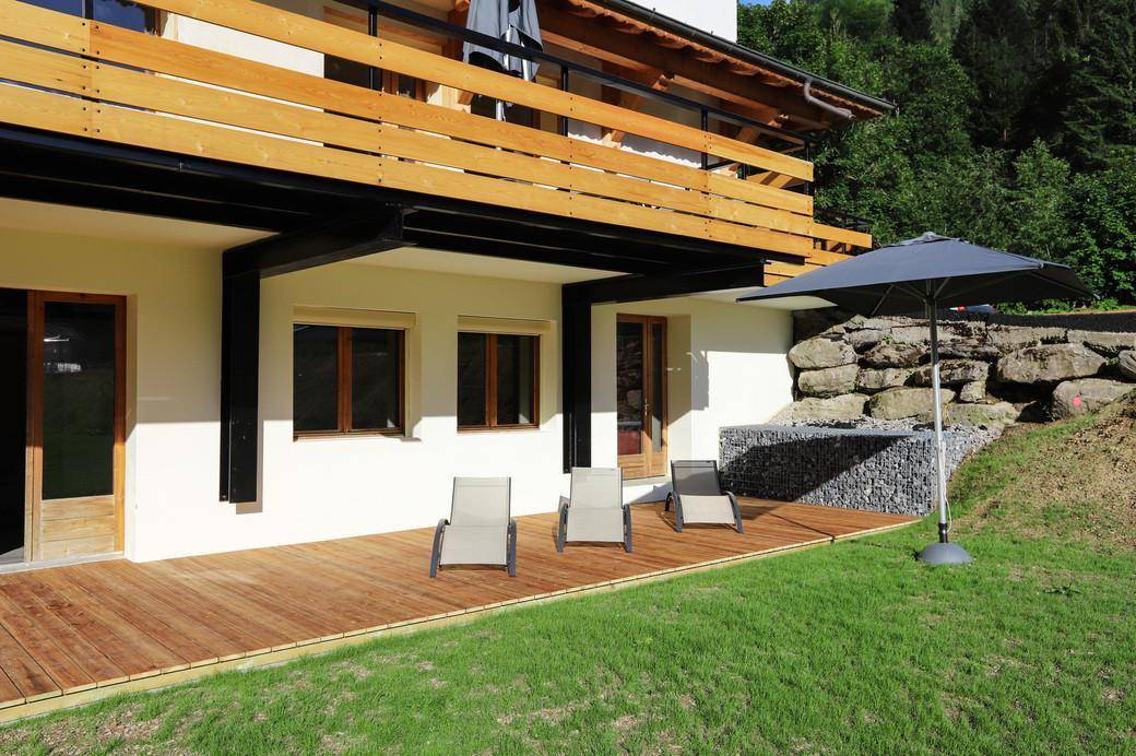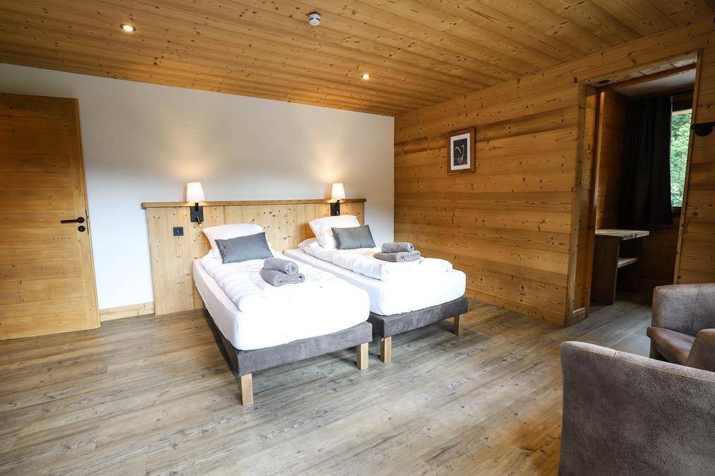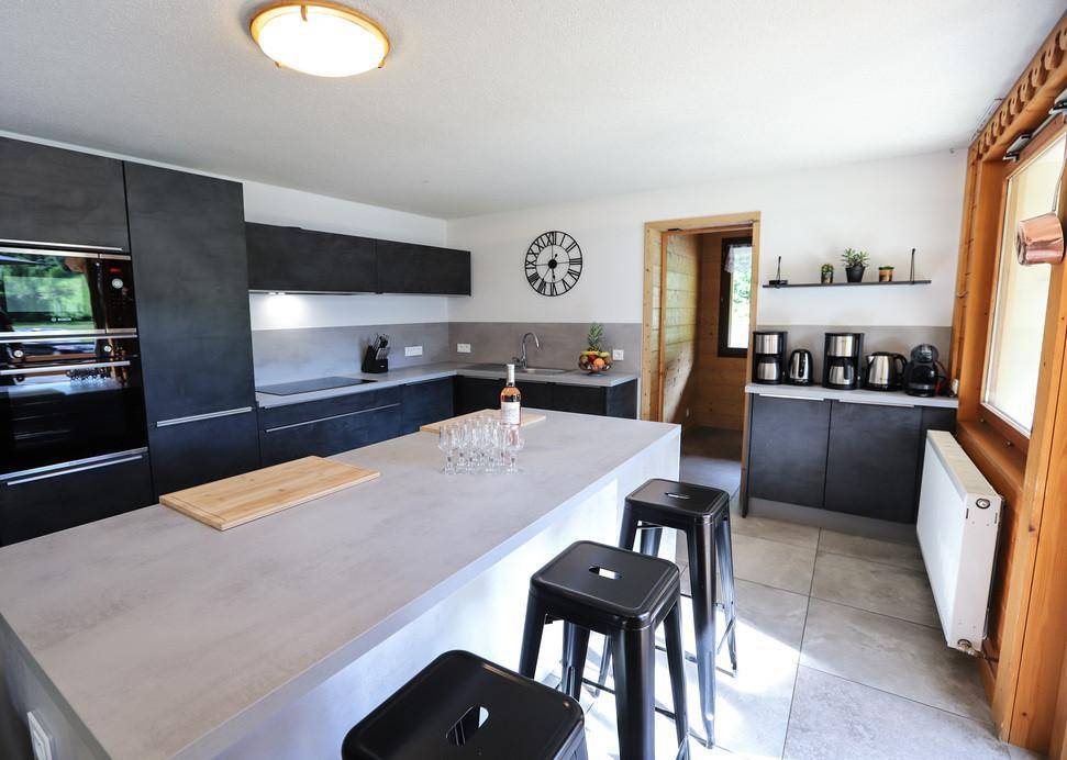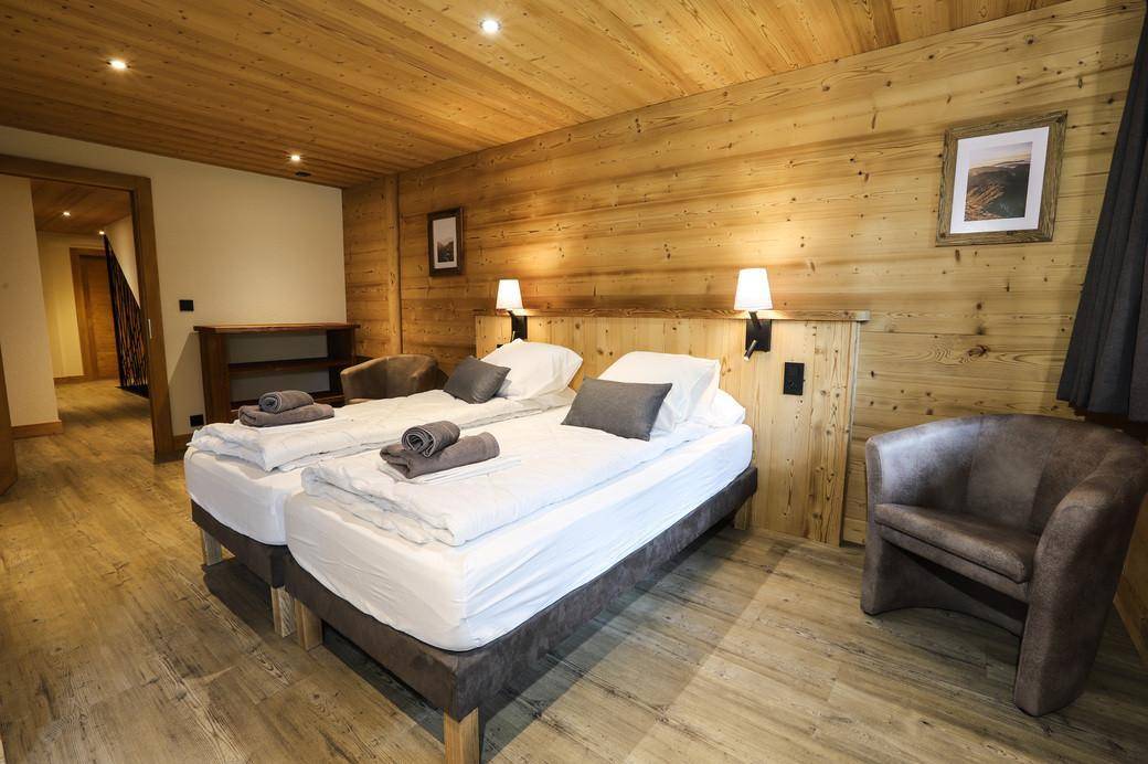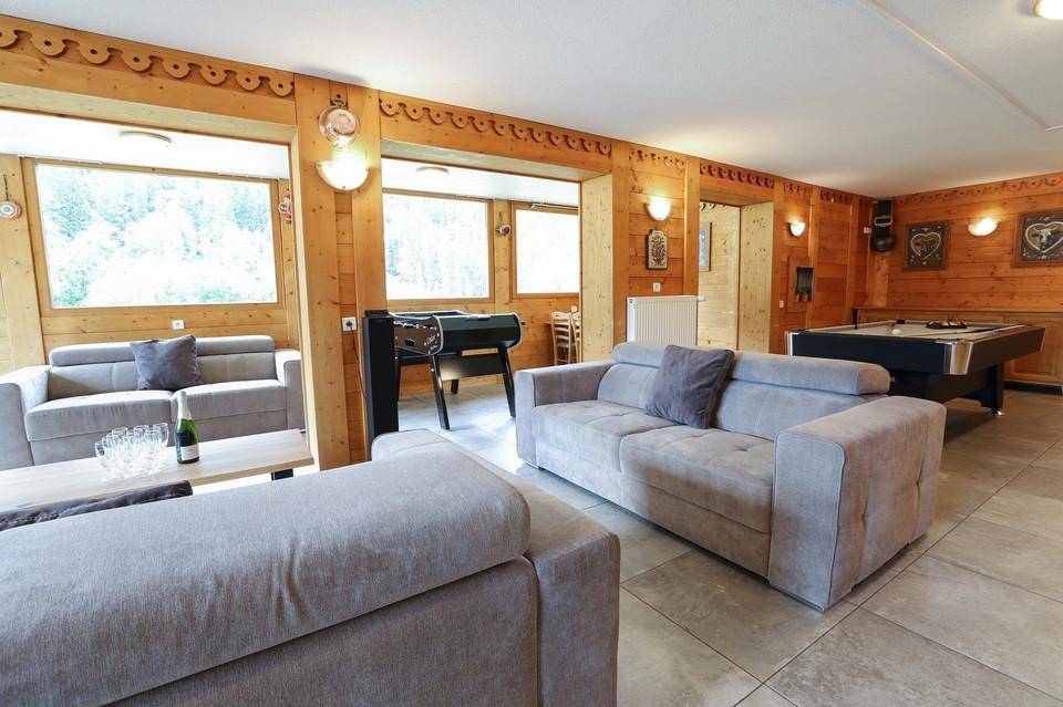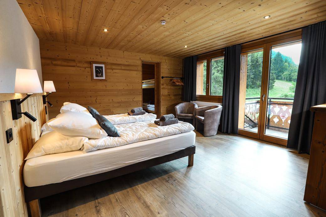 Fläche von ungefähr 300 m². Orientierung : West. Niveau 0 : Wohnzimmer. Schlafzimmer mit Doppelbett (160x200), Waschraum, WC. 4 Schlafzimmer mit Einzelbett (90x200), Waschraum, WC. Schlafzimmer mit 2 Einzelbetten (90x200), 2 Stockbetten (80x190), Waschraum, WC. Schlafzimmer mit 3 Einzelbetten (90x200), Waschraum, WC. Küche mit Fonduegerät, Raclettegerät, 2 Wasserkocher, 3 Kaffeemaschinen, Backofen, Toaster, Geschirrspülmaschine, Mikrowellenherd, 2 Induktionsherdplatten, Kühl-Gefrier-Kombination. separates WC. Badezimmer. Balkon. Niveau -1 : Waschräume. separates WC. Terrasse. Die oberen Betten sind nicht für Kinder unter 6 Jahren geeignet.
