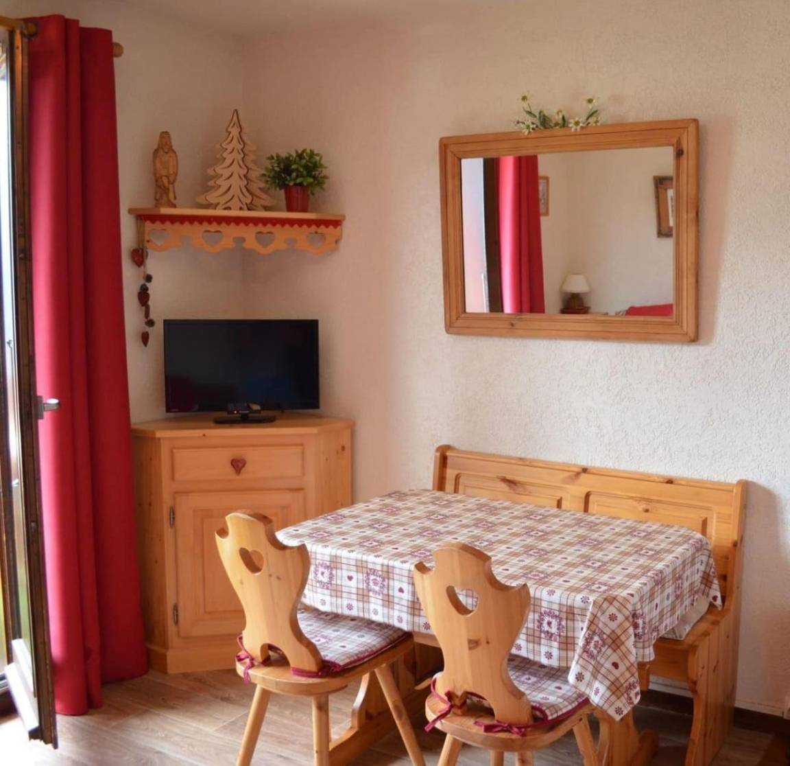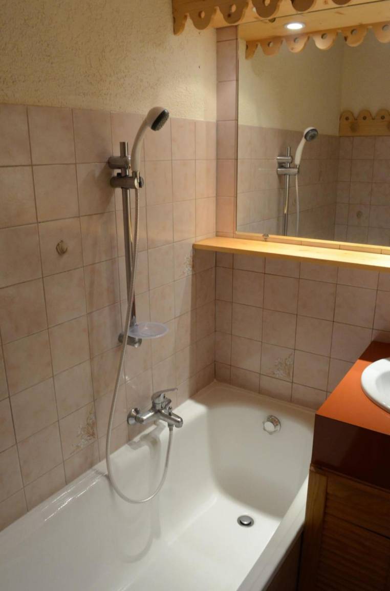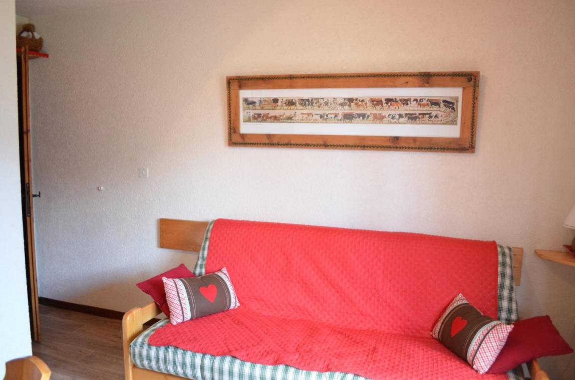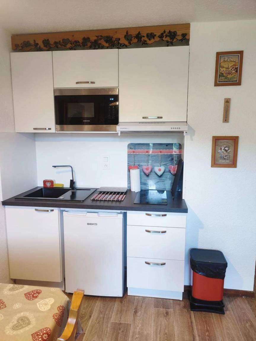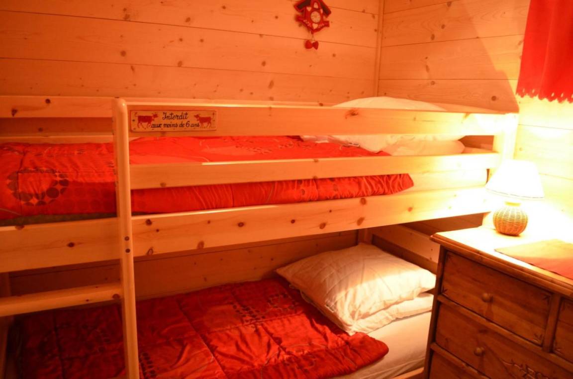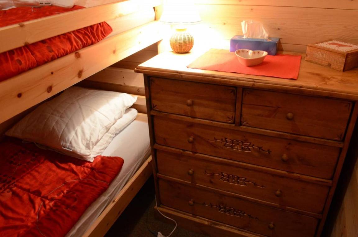 Fläche von ungefähr 22 m². Etage -1. Orientierung : Süd-West. Wohnzimmer mit Klappschlafcouch (140*190), TV. offener Schlafbereich mit 2 Stockbetten. Kochnische mit Fonduegerät, Raclettegerät, Wasserkocher, Kaffeemaschine (filtres), Backofen, Mikrowellengrill, Toaster, 2 Induktionsherdplatten, Kühl-Gefrier-Kombination. Badezimmer mit Badewanne. separates WC. Balkon mit Gartentisch und -stühle. Die oberen Betten sind nicht für Kinder unter 6 Jahren geeignet.