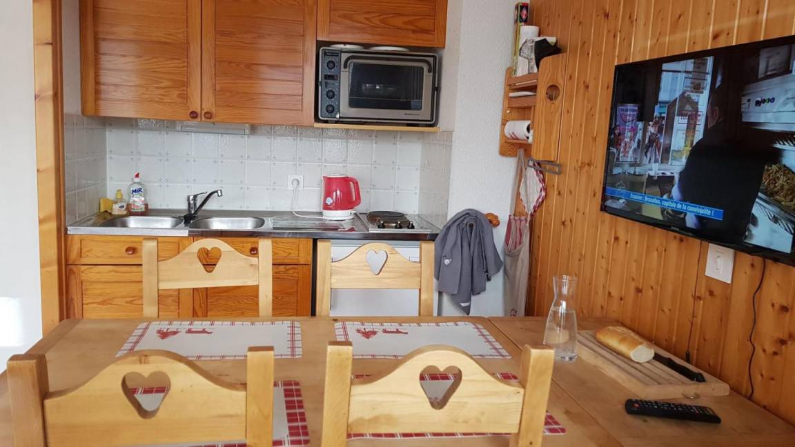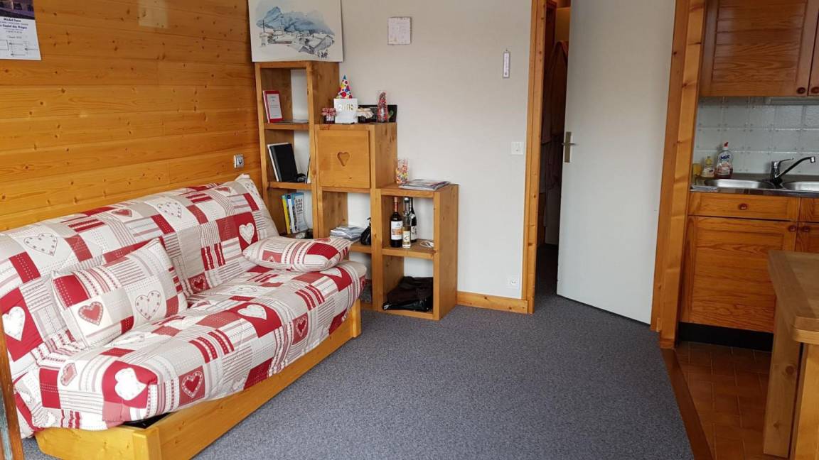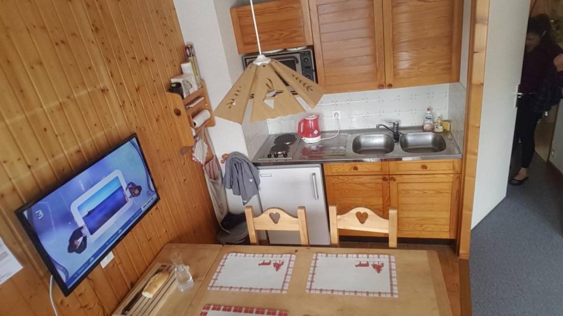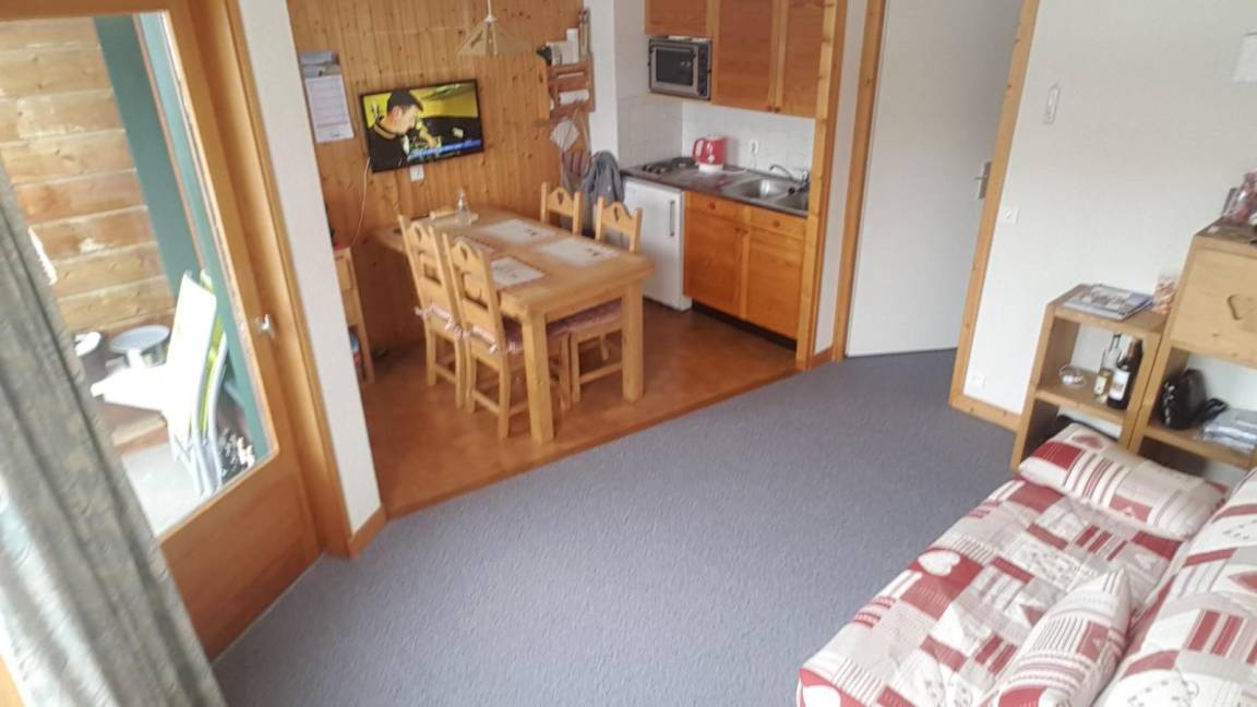 Fläche von ungefähr 25 m². 3te Etage. Orientierung : Süd-West. Wohnzimmer mit Klappschlafcouch (160*200). offener Schlafbereich mit 2 Stockbetten. Küche mit Fonduegerät, , Raclettegerät, Wasserkocher, Kaffeemaschine (Tassimo), kleiner Backofen mit Mikrowellenfunktion, Toaster, Kühlschrank. Badezimmer. separates WC. Balkon mit Gartentisch und -stühle. Die oberen Betten sind nicht für Kinder unter 6 Jahren geeignet.