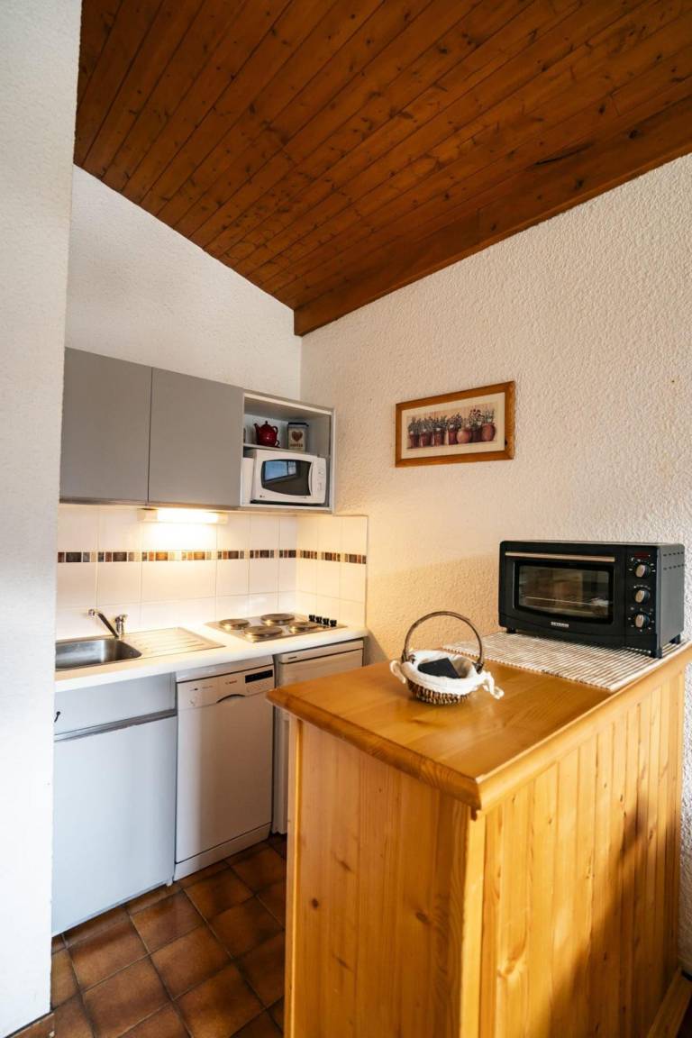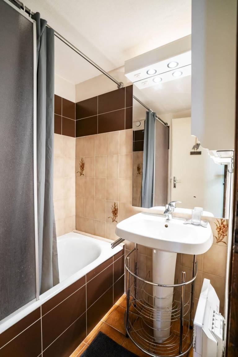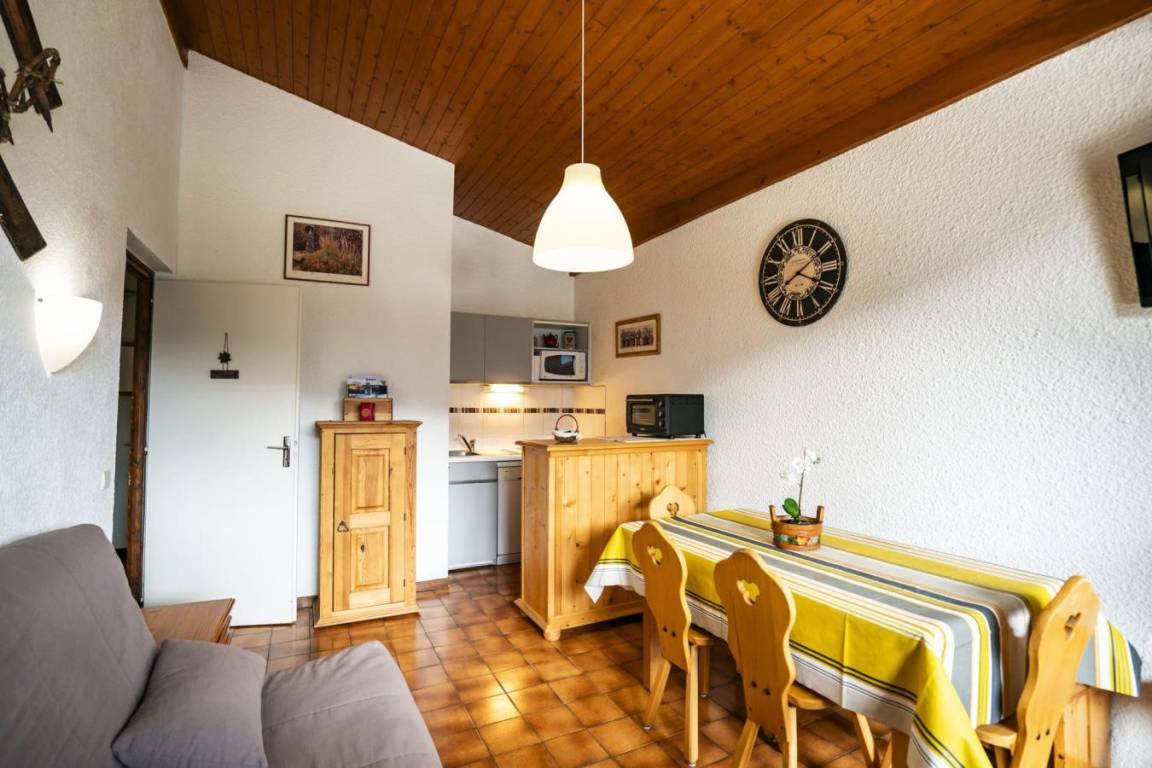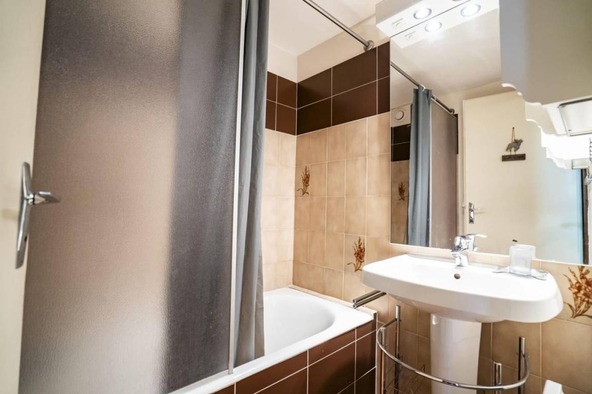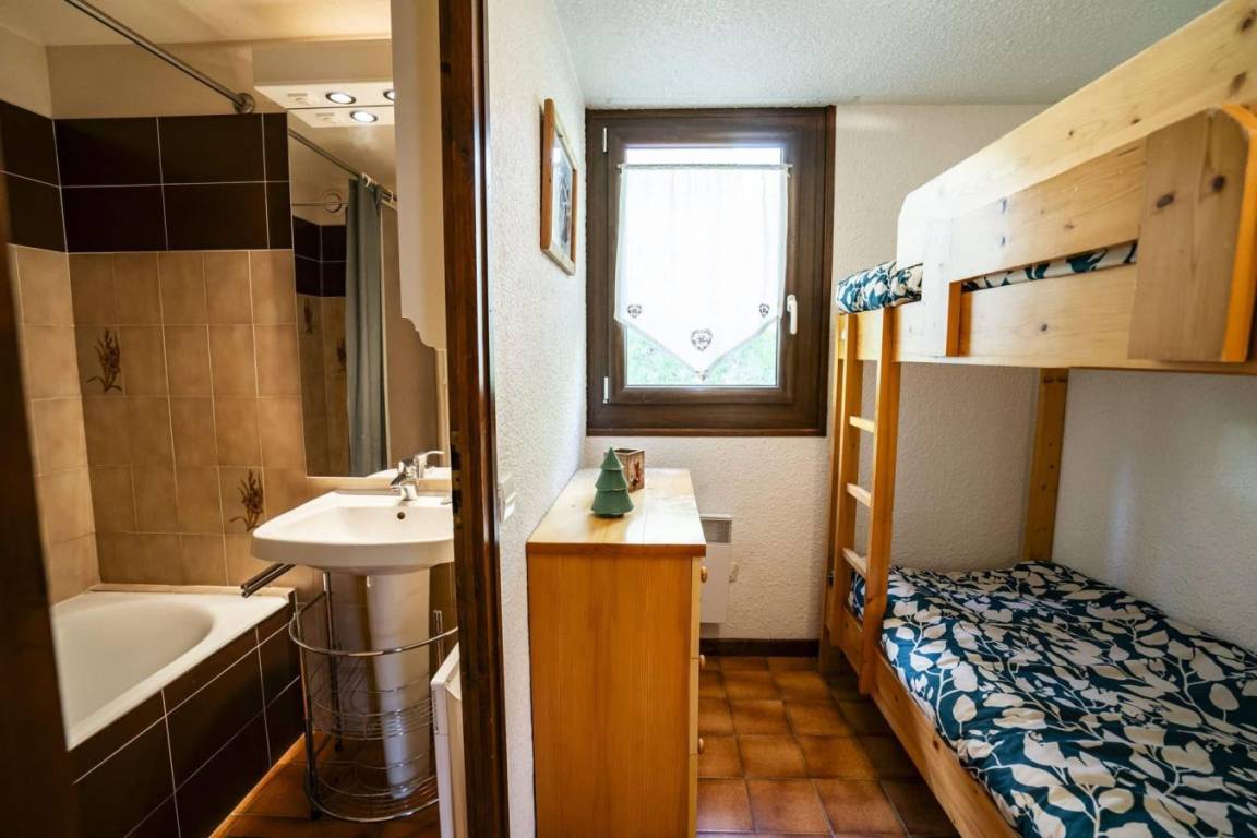 Fläche von ungefähr 35 m². 2te Etage. Orientierung : Süd-West. Wohnzimmer mit Klappschlafcouch. Schlafzimmer mit Doppelbett (140*190). offener Schlafbereich mit 2 Stockbetten. Kochnische mit Kaffeemaschine (filtre), Geschirrspülmaschine, Mikrowellenherd, elektronische Herdplatten, Kühlschrank. separates WC. Badezimmer mit Badewanne. Balkon. Die oberen Betten sind nicht für Kinder unter 6 Jahren geeignet.