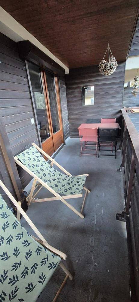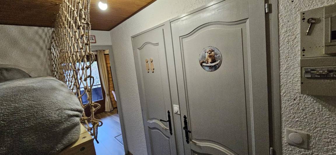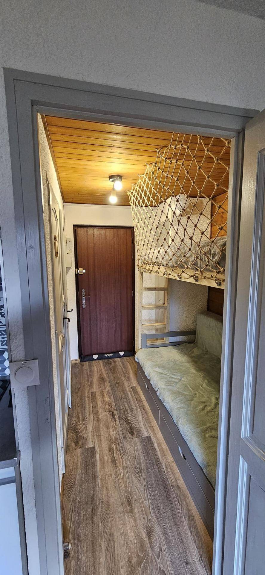 Fläche von ungefähr 20 m². 1te Etage. Orientierung : Süd-West. Wohnzimmer mit Klappschlafcouch (140). offener Schlafbereich mit 2 Stockbetten (90). Küche mit Fonduegerät, , Raclettegerät, Wasserkocher, Kaffeemaschine (Dolce Gusto), kleiner Backofen mit Mikrowellenfunktion, Toaster, Geschirrspülmaschine, 2 Induktionsherdplatten, Kühlschrank. Badezimmer mit Haartrockner. separates WC. Balkon mit Grillrost, Gartentisch und -stühle. Die oberen Betten sind nicht für Kinder unter 6 Jahren geeignet.