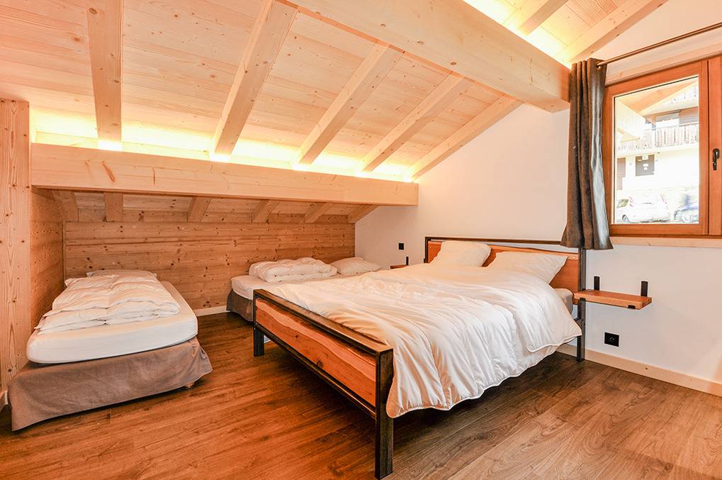 2. Etage (leichte Dachschrägen): Wohn-/Schlafraum mit Panoramafenstern, gemütlicher Sitzecke (Schlafsofa 2 Pers.), TV, Balkon. Doppelzimmer mit franz. Bett, Balkon. Bad: Bw/Du, Wb. 4-Bettzimmer mit 2 Einzelbetten, franz. Bett, Bad (Du, Wb). 5-Bettzimmer mit Einzelbett, Doppelbett, Etagenbett, Bad (Du, Wb). Separates WC.