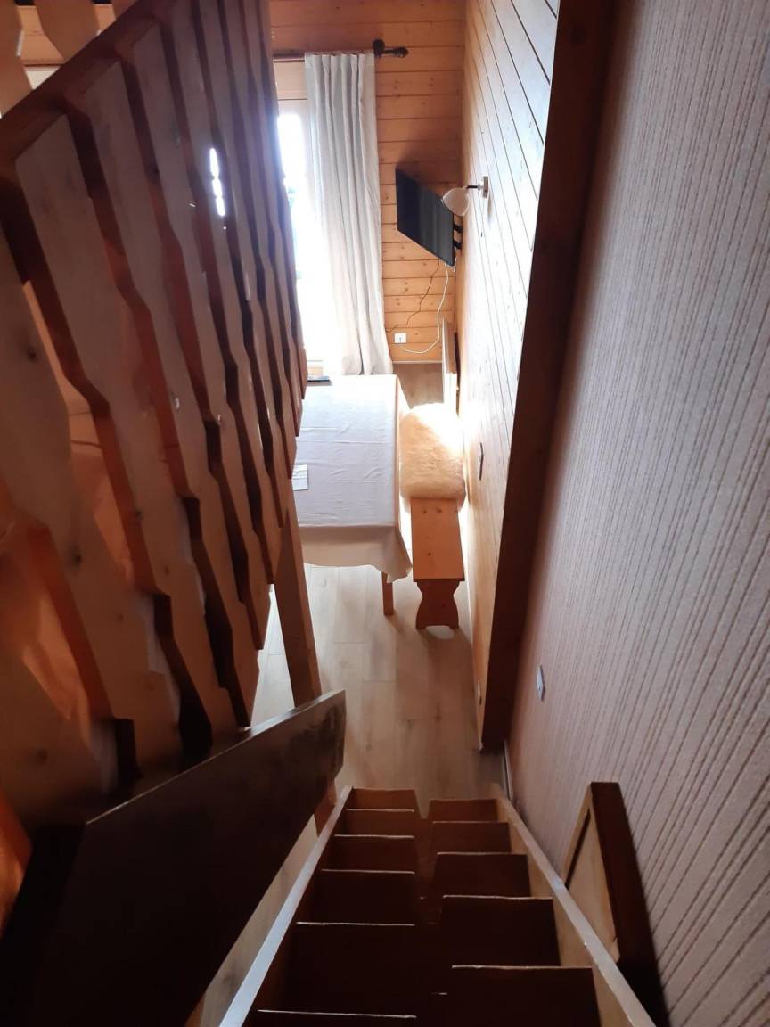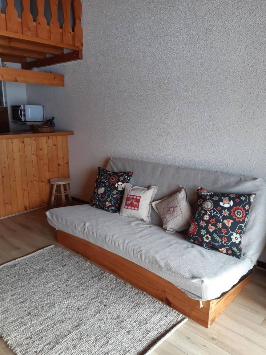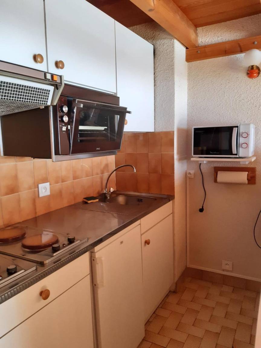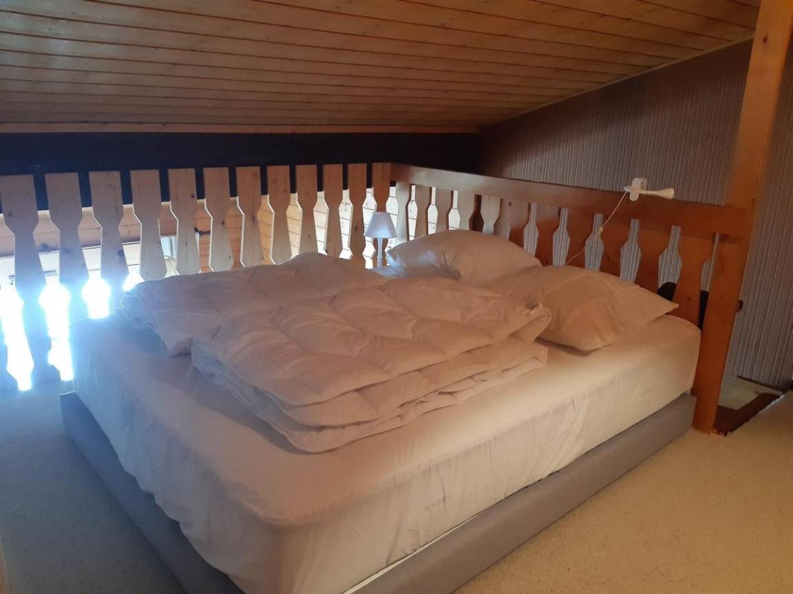 Fläche von ungefähr 35 m². Einige als Maisonette. 3te Etage. Orientierung : Süd-West. Wohnzimmer. Zwischengeschoss mit Doppelbett (160*200), Einzelbett (90*190), 2 Stockbetten (80*190). Küche mit Wasserkocher, 2 Kaffeemaschinen (filtres et Senseo), Toaster, Mikrowellenherd, kleiner Backofen, 2 Herdplatten, Kühlschrank. Badezimmer mit WC. Balkon mit Gartentisch und -stühle. Die oberen Betten sind nicht für Kinder unter 6 Jahren geeignet.