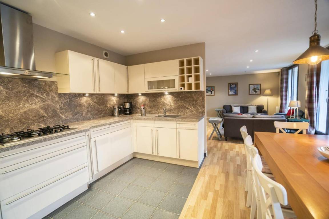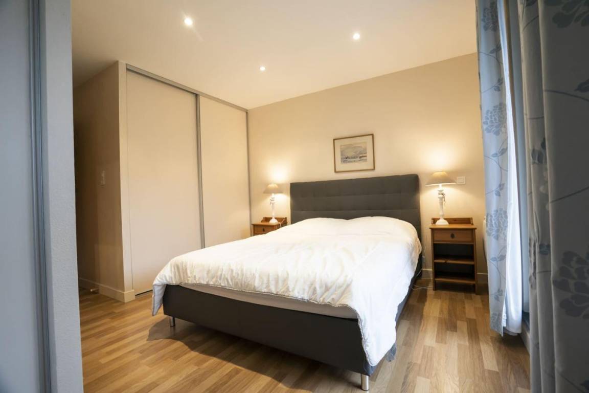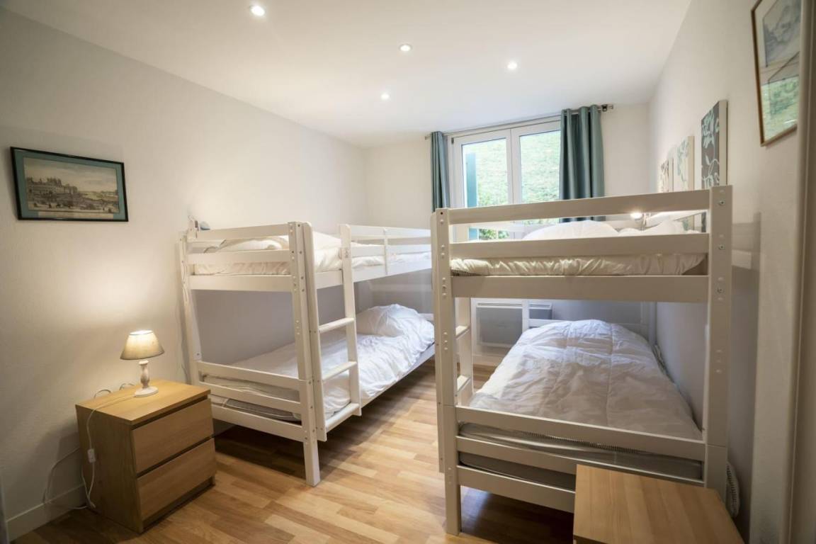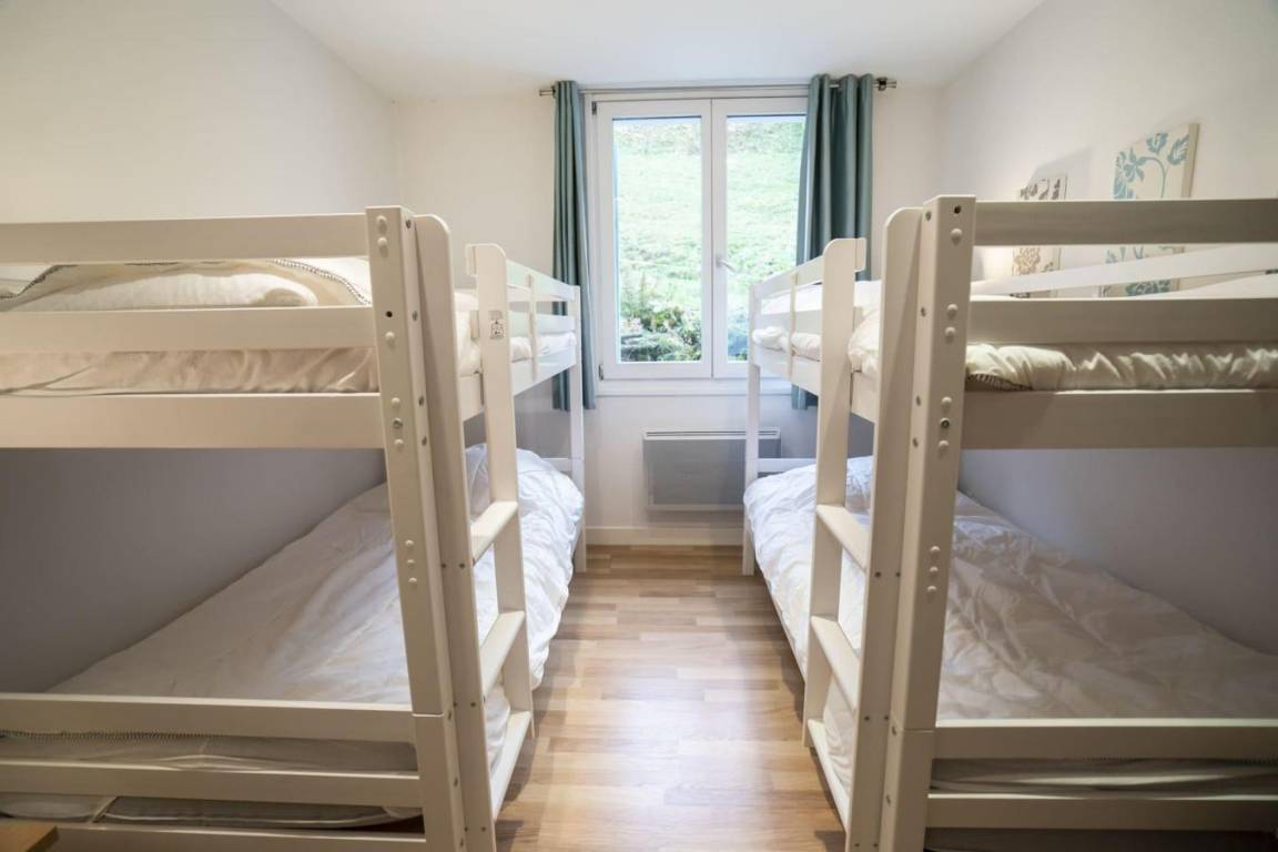 Fläche von ungefähr 120 m². 2te Etage. Orientierung : Süd. Wohnzimmer. Schlafzimmer mit Dusche, Doppelbett (180*200), WC. Schlafzimmer mit 4 Stockbetten. Schlafzimmer mit Doppelbett (140*190). Küche mit Fonduegerät, , Raclettegerät, Wasserkocher, 2 Kaffeemaschinen (filtre), Geschirrspülmaschine, Kühl-Gefrier-Kombination. Badezimmer. separates WC. Balkon mit Gartentisch und -stühle. Waschmaschine, Wäschetrockner. Die oberen Betten sind nicht für Kinder unter 6 Jahren geeignet.