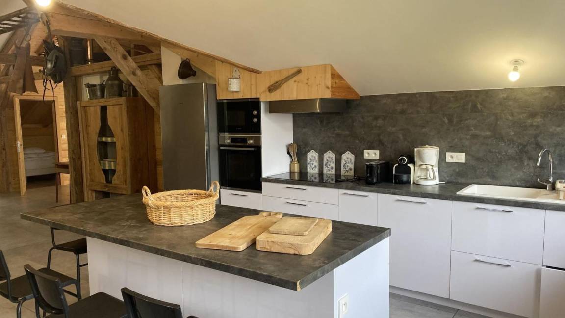 Fläche von ungefähr 180 m². 2te Etage. Orientierung : Süd-Ost. Wohnzimmer. Schlafzimmer mit 2 Einzelbetten (90*200), 2 Stockbetten (90*200). 2 Schlafzimmer mit Doppelbett (160*200). Schlafzimmer mit Einzelbett (90*200). Schlafzimmer mit Doppelbett (140*190), 2 Einzelbetten (90*200). Küche mit Wasserkocher, Kaffeemaschine (filtre), Backofen, Toaster, Geschirrspülmaschine, Mikrowellenherd, 2 Induktionsherdplatten, Kühl-Gefrier-Kombination. 2 Badezimmer. 2 duschräume mit WC. separates WC. Balkon. Die oberen Betten sind nicht für Kinder unter 6 Jahren geeignet.