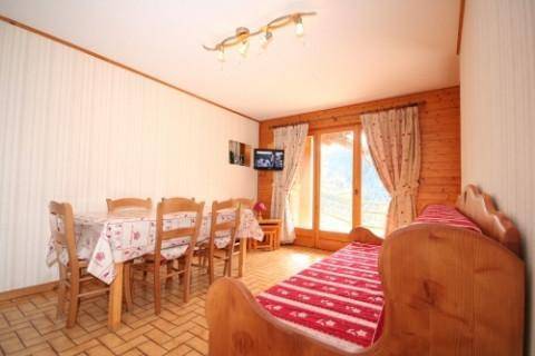 Fläche von ungefähr 35 m². Etage -2. Orientierung : Süd-West. Wohnzimmer mit Ausziehschlafcouch für 2 Personen. offener Schlafbereich mit 2 Stockbetten. Schlafzimmer mit Doppelbett (140*190). Küche mit Fonduegerät, Raclettegerät, Wasserkocher, Kaffeemaschine, Backofen, Toaster, Geschirrspülmaschine, Mikrowellenherd, Kühl-Gefrier-Kombination. Badezimmer mit Badewanne. separates WC. Terrasse. Die oberen Betten sind nicht für Kinder unter 6 Jahren geeignet.