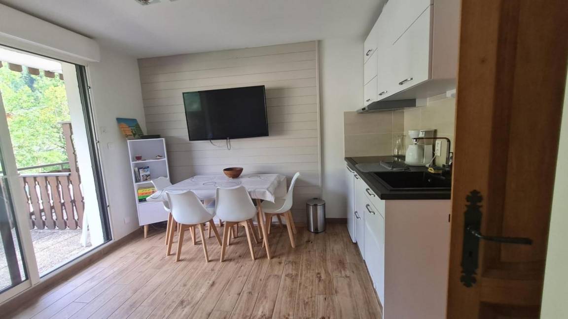 Die Residenz l'Oree des Pistes, ohne Lift, befindet sich im Ferienort Châtel, an der Straße Pré-la-Joux, im Bezirk Linga/Villapeyron. Sie liegt 2100 m vom Dorfzentrum und allen Dienstleistungen entfernt. Die Linga-Seilbahn und der Kindergarten Les Pitchounes liegen 100 m vom Gebäude entfernt, ein Paradies für Skifahrer. Fläche von ungefähr 25 m². 1te Etage. Orientierung : Ost. Wohnzimmer mit Klappschlafcouch. Schlafzimmer mit Doppelbett. offener Schlafbereich mit 2 Stockbetten. Kochnische mit Backofen, elektronische Herdplatten, Kühlschrank. Waschräume mit Dusche. separates WC. Balkon. Die oberen Betten sind nicht für Kinder unter 6 Jahren geeignet.