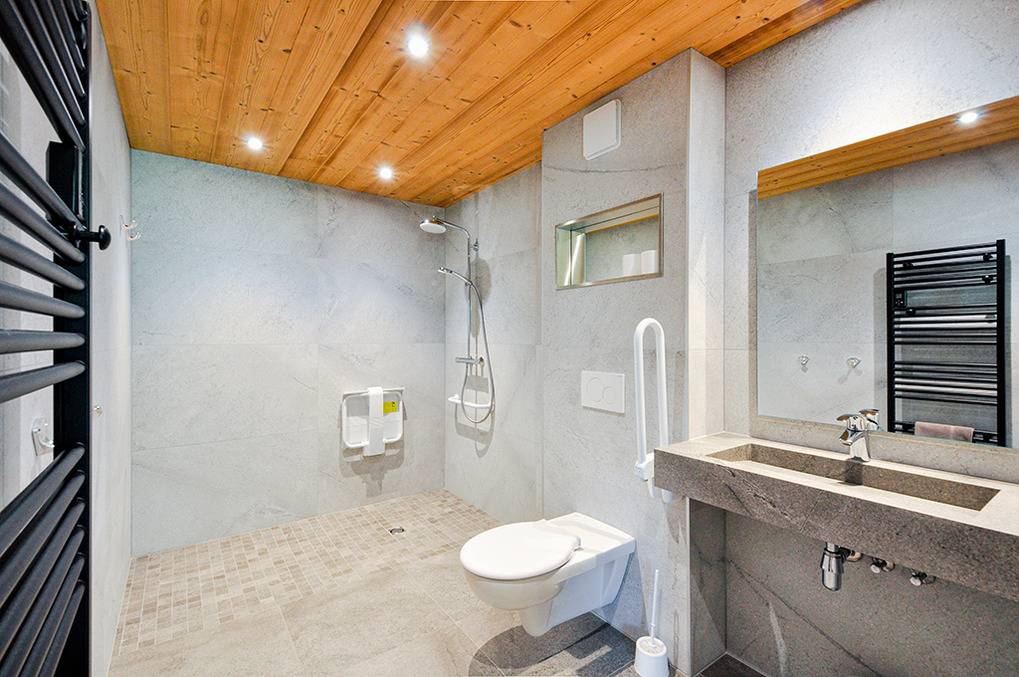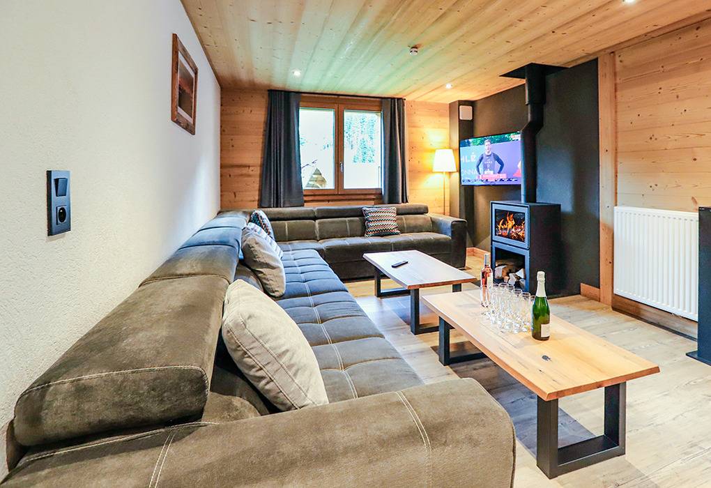 Haus: Schöne Chalet-Residenz mit drei modernen Komfortwohnungen. Alle mit eigenem Wellnessbereich (jeweils Sauna & Whirlpool). Alle Fewos großzügig gestaltet, mit hochwertiger Ausstattung: Internetzugang über W-Lan, Smart-TVs, alle Schlafräume mit eigenem Bad (Du, Wb, WC). Waschmaschine, Trockner in jeder Fewo. Aufzug im Haus, zusätzlich Treppenhaus. Zentralheizung. Die schön gestalteten Wellnessbereiche befinden sich im Tiefparterre des Hauses und verfügen über große Panoramafenster mit Blick auf die umliegende Bergwelt. Jeder Wellnessbereich mit Sauna, Whirlpool, Dusche, WC, Ruheliegen, Zugang zum Garten (angrenzend hübscher kleiner Gebirgsbach). Ein Skiraum pro Fewo mit Schuhtrocknern. 6 Pkw-Stellplätze pro Fewo an der Residenz. Ladestation für E-Autos (Gebühr). Baguette-Lieferservice zum Haus.