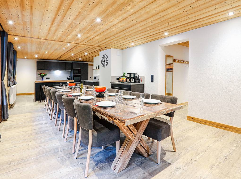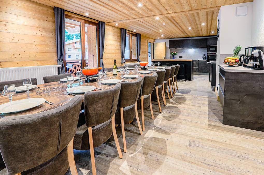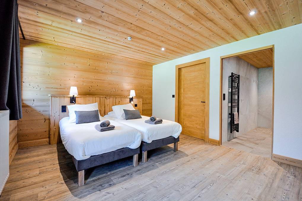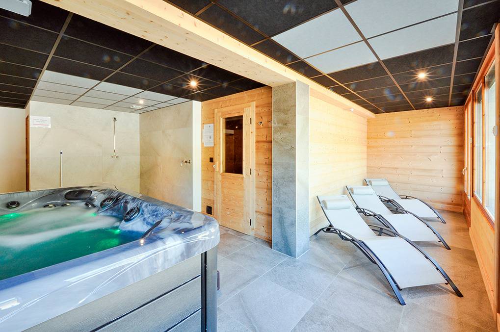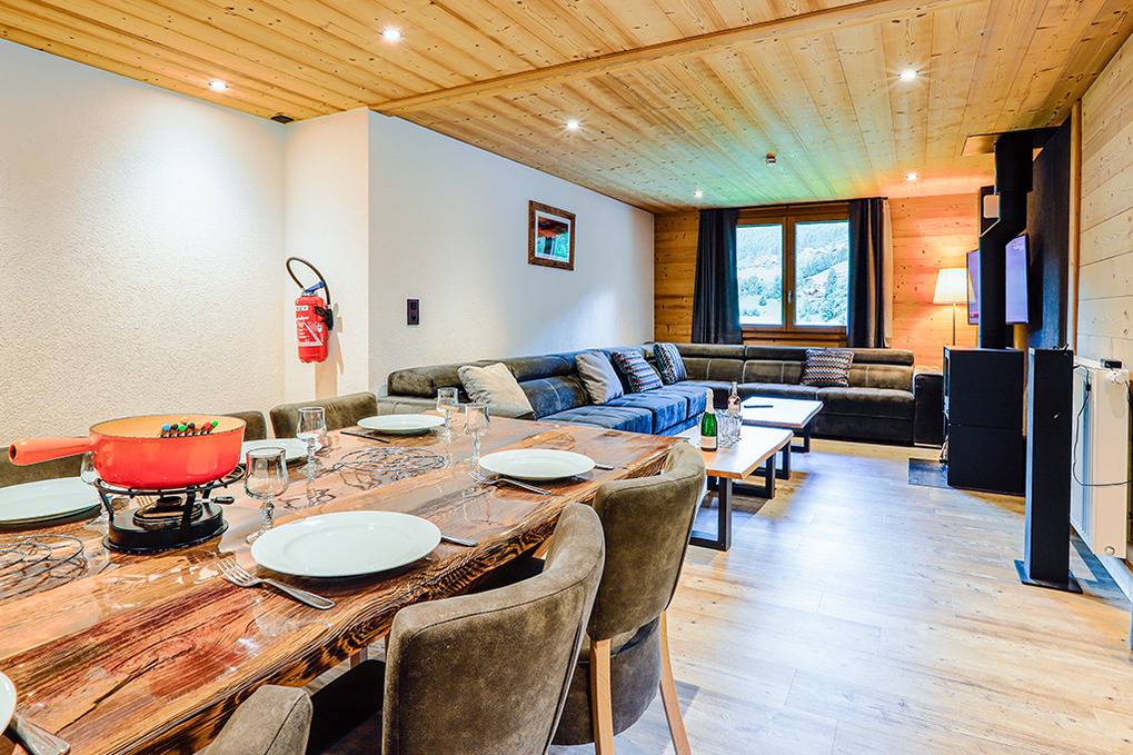 F 016.036 Chaletwohnung 10-15 Pers.: 7-Zimmerwohnung mit 200 qm Wohnfläche über zwei Etagen. 2. Etage: Wohnraum (50 qm) mit Kaminofen, Sitzecke, Smart/Sat-TV, Esstisch, moderner Einbauküche (Backofen, Mikrowelle, Spülmaschine, Tiefkühlschrank). Drei Doppelzimmer mit Bad, Balkon. 3-Bettzimmer mit Bad, Balkon. 4-Bettzimmer mit 2 Einzelbetten, Etagenbett, Bad, Balkon. 1. Etage: Doppelzimmer mit TV, Bad (Zugang über das Treppenhaus). Tiefparterre: eigener Wellnessbereich mit Sauna, Whirlpool, Dusche, WC, Ruheliegen, Panoramafenstern auf die Bergwelt von Châtel.