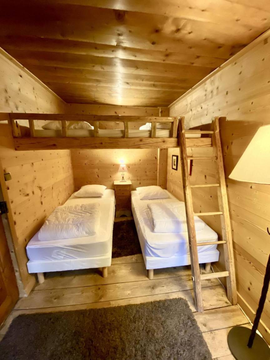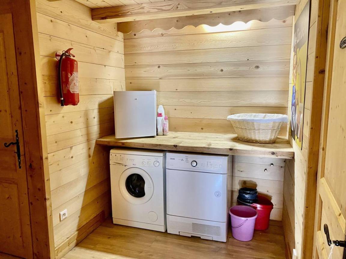 Fläche von ungefähr 90 m². Orientierung : Süd-West. Wohnzimmer. Schlafzimmer mit Doppel Hochbett (140x190), 2 Einzelbetten. Zwischengeschoss mit 2 Einzelbetten (90x200). Unabhängiges Zimmer mit Doppelbett, Waschraum, WC. Küche mit Fonduegerät, Raclettegerät, Wasserkocher, Kaffeemaschine (filtre), Backofen, Toaster, Geschirrspülmaschine, Mikrowellenherd, 2 Gasherdplatten, Kühl-Gefrier-Kombination. Waschräume mit Dusche, Waschmaschine, Wäschetrockner. separates WC. Balkon.