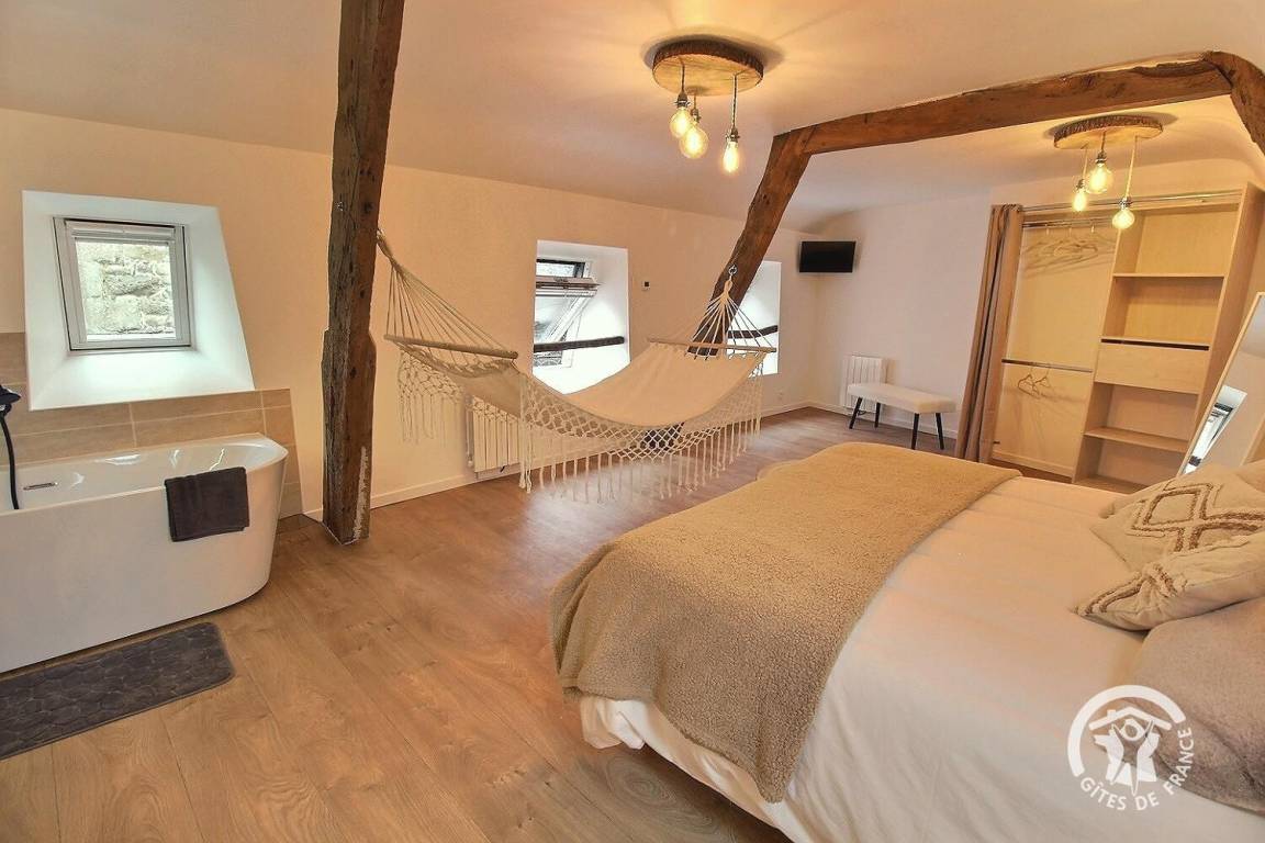 „Le gîte est maginfique, bien situé, bien aménagé et décoré. Les enfants adorent les balancelle, hamac et geande baignoire. Les propriétaires sont sympathiques, disponibles et affables.“