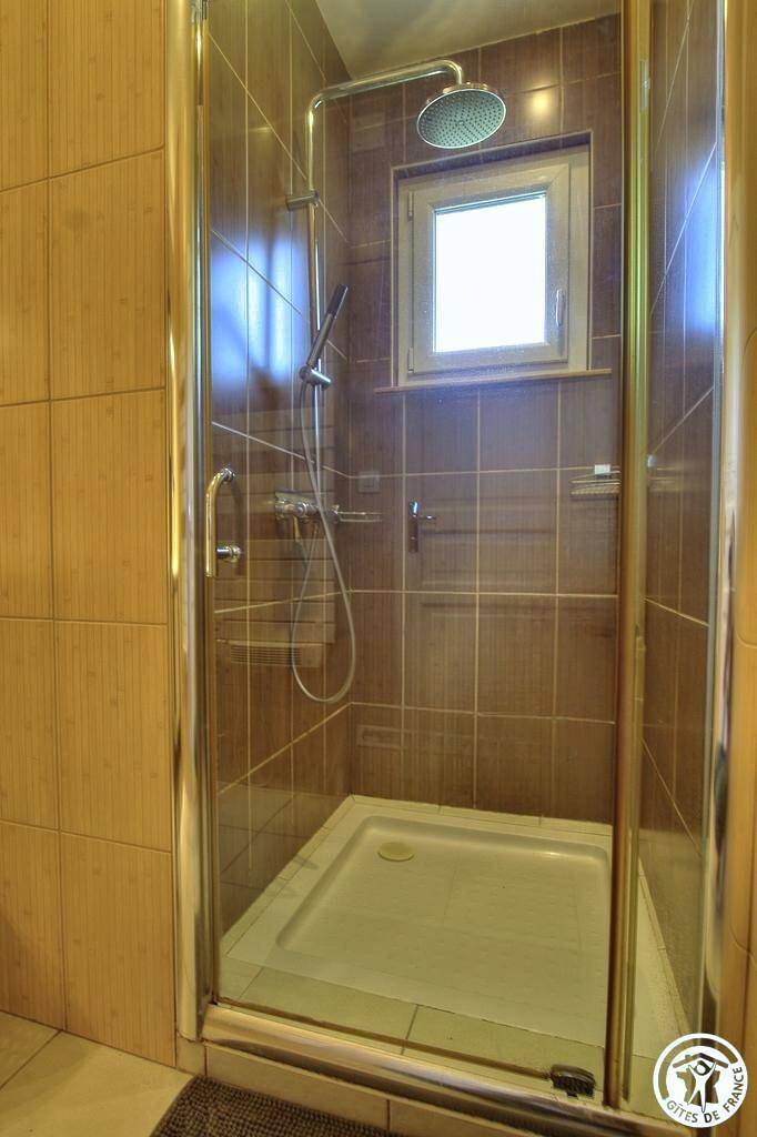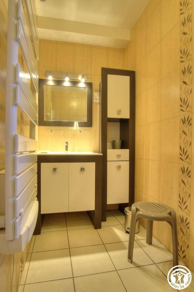 Ausgestattete Küche mit großem, hellem Wohnzimmer dank Erkerfenstern. Das vom Wohnzimmer ausgehende Wohnzimmer bietet eine Schlafbank für eine Person (100 cm). Zwei Schlafzimmer (1*160*200 und 2*90*190). Duschraum und Zugang zum separaten WC, ein sehr schmaler Flur.