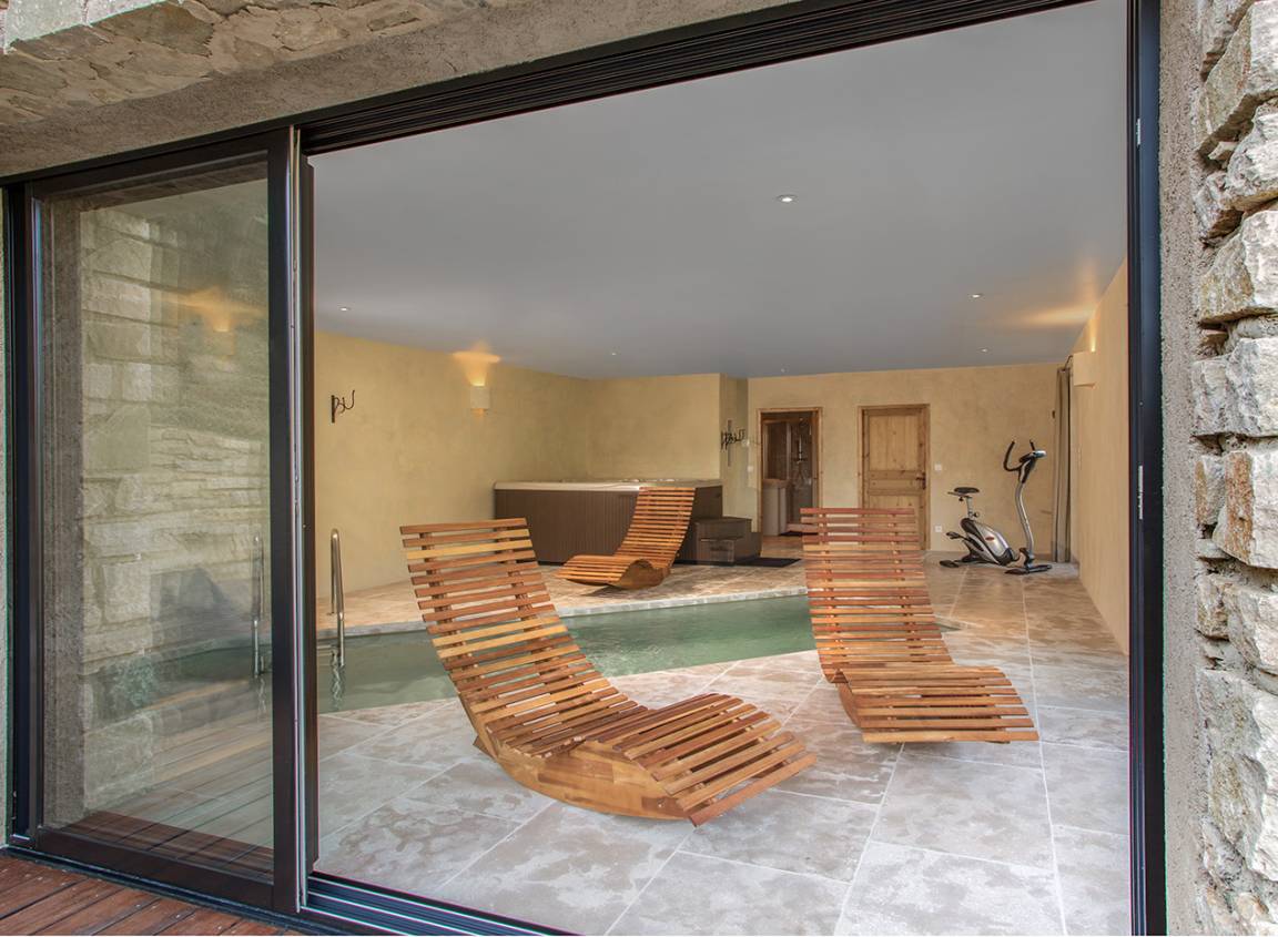 Erdgeschoss: Küche, Esszimmer, Wohnzimmer, Stereoanlage, DVD-Player. Obergeschoss: 3 Schlafzimmer (1 Bett 140 cm) (1 Bett 160 cm) (3 Betten 90 cm), darunter 1 mit eigenem Bad (Dusche), Badezimmer. Der Swimmingpool wird wenn nötig beheizt, der Zugang ist zum Schutz der Kinder gesichert. Er ist den Gästen der Ferienunterkünfte vorbehalten und steht Ihnen frei zur Verfügung. Spielplatz, Tischtennisplatte. Vor Ort gibt es zudem einen Wellness-Bereich mit beheiztem Innenpool und Schwimmkorridor, Whirlpool und Massageraum (Zusatzleistung nach Reservierung).