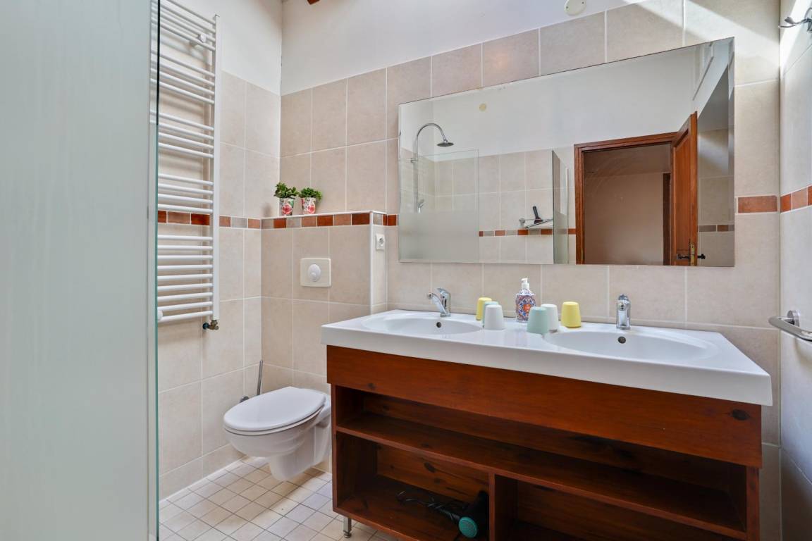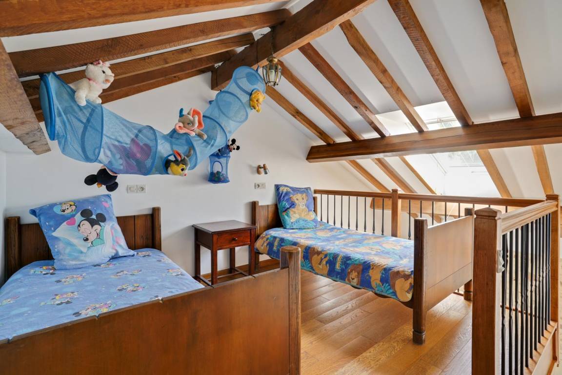 Obergeschoss: 1 Schlafzimmer mit Doppelbett (140 cm) und eigenem Duschbad mit WC, 1 Schlafzimmer mit Doppelbett (160 cm) und Sitzecke, 2 Schlafzimmer mit je einem Doppelbett (eines davon 160 cm) und eine Galerie mit zwei Einzelbetten (90 cm). Badezimmer mit Dusche, Badewanne und WC.