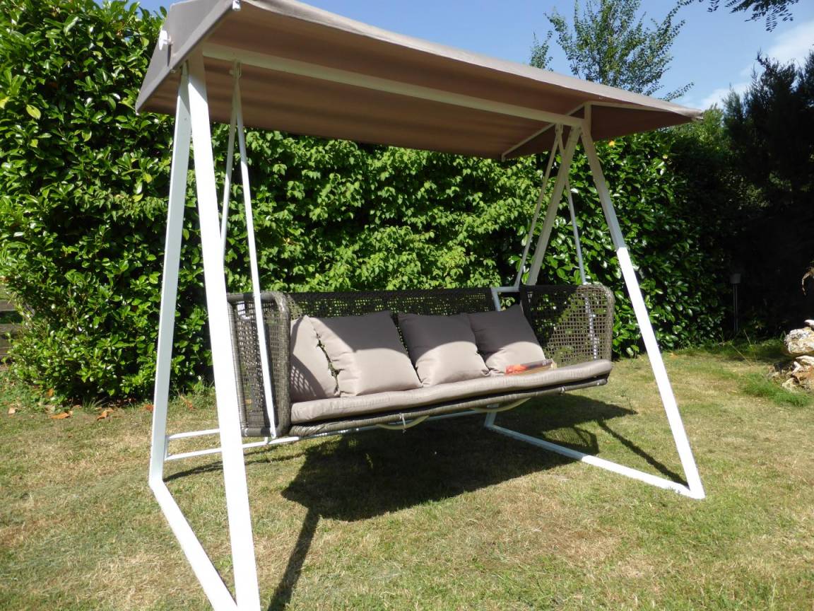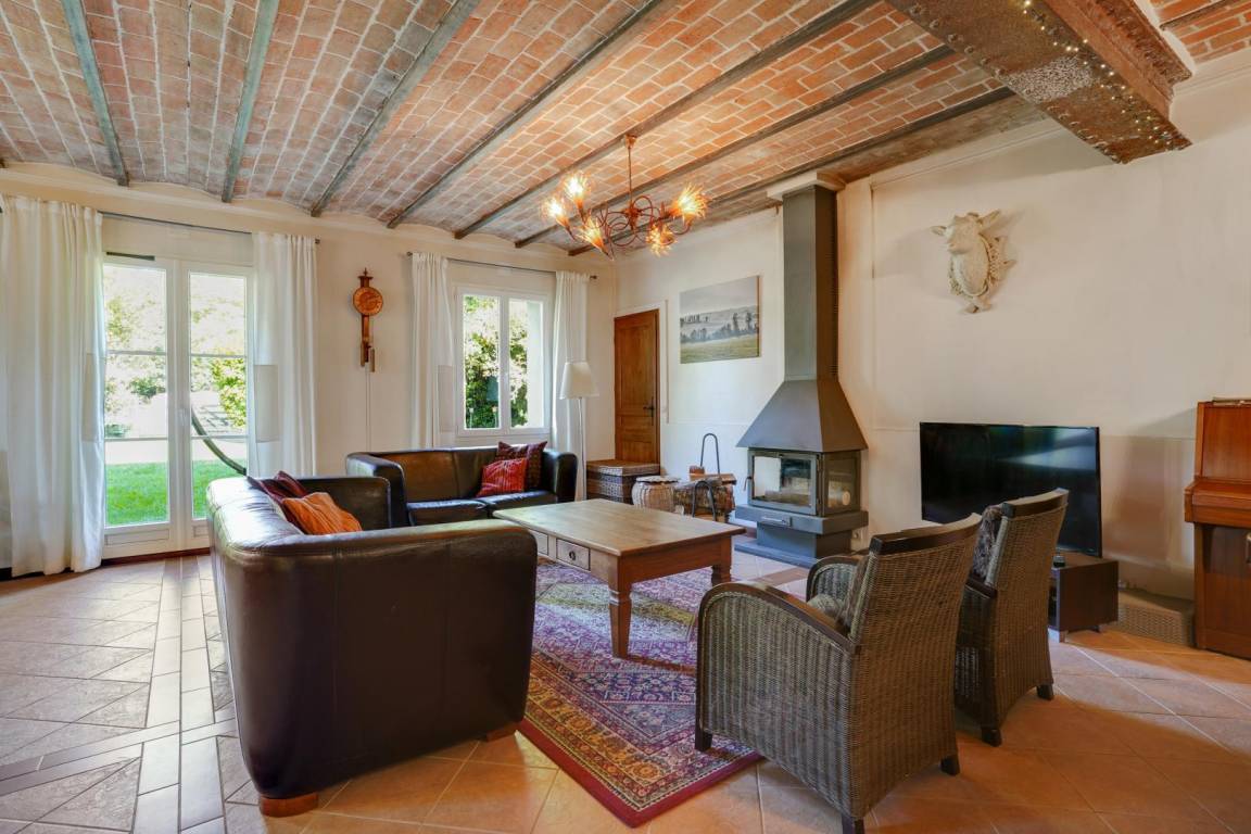 Ein 400 m² großer Garten mit Gartenmöbeln, Sonnenliegen, Grill und Pizzaofen. In einem privaten, umzäunten Bereich: ein kleiner, unbeheizter Pool (1 x 2 Meter, 70 cm tief) mit angrenzender Rasenfläche.