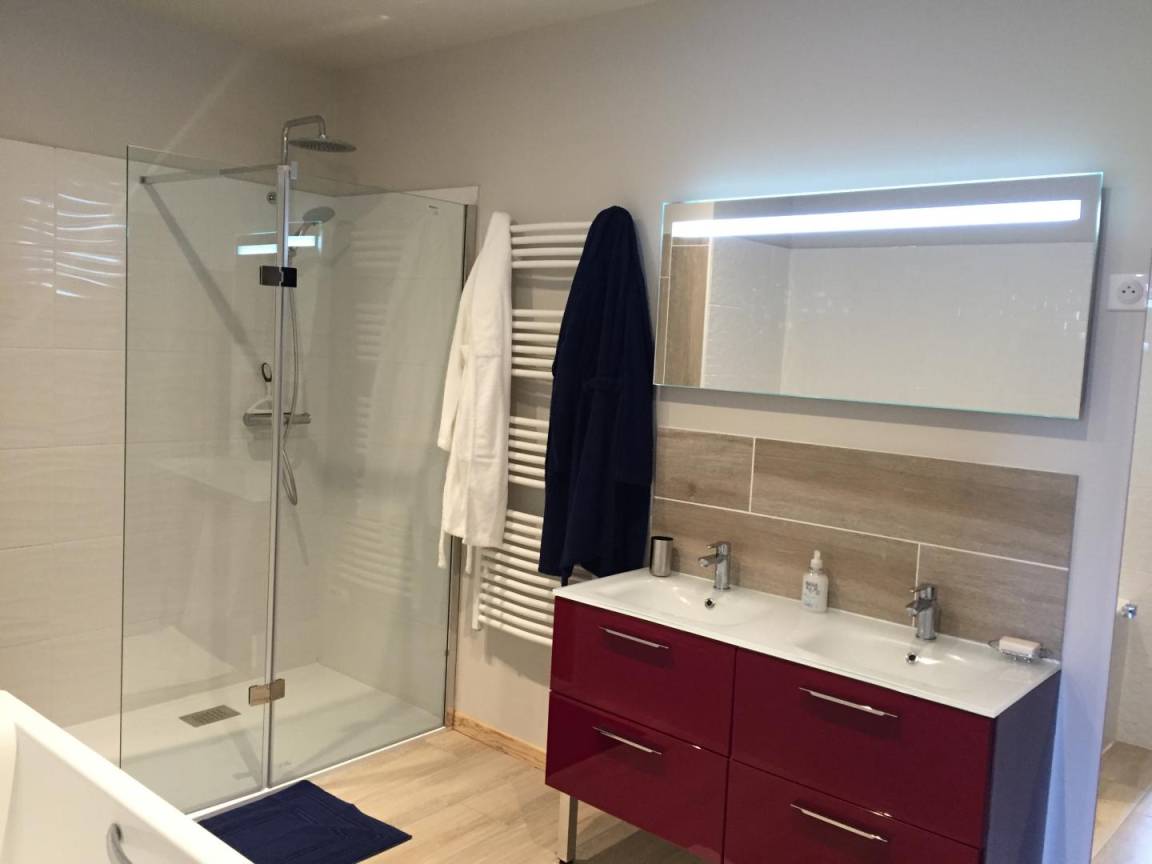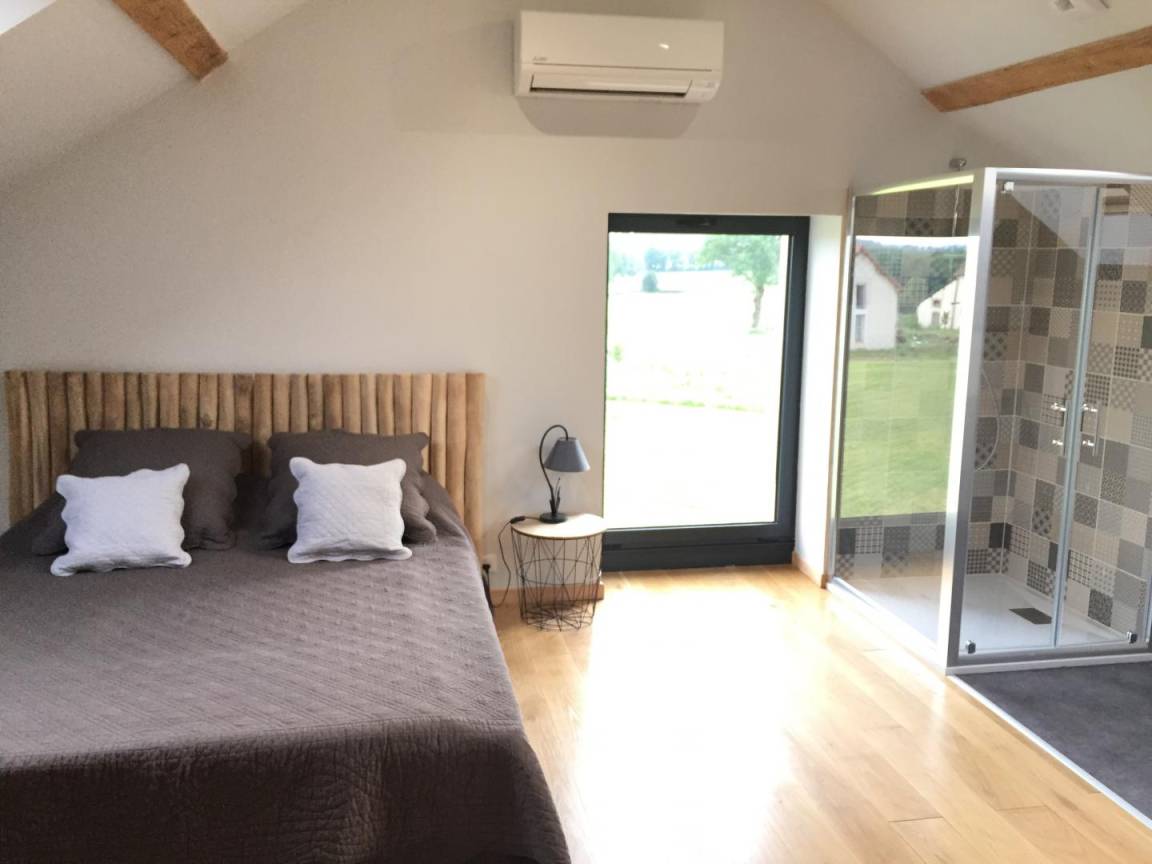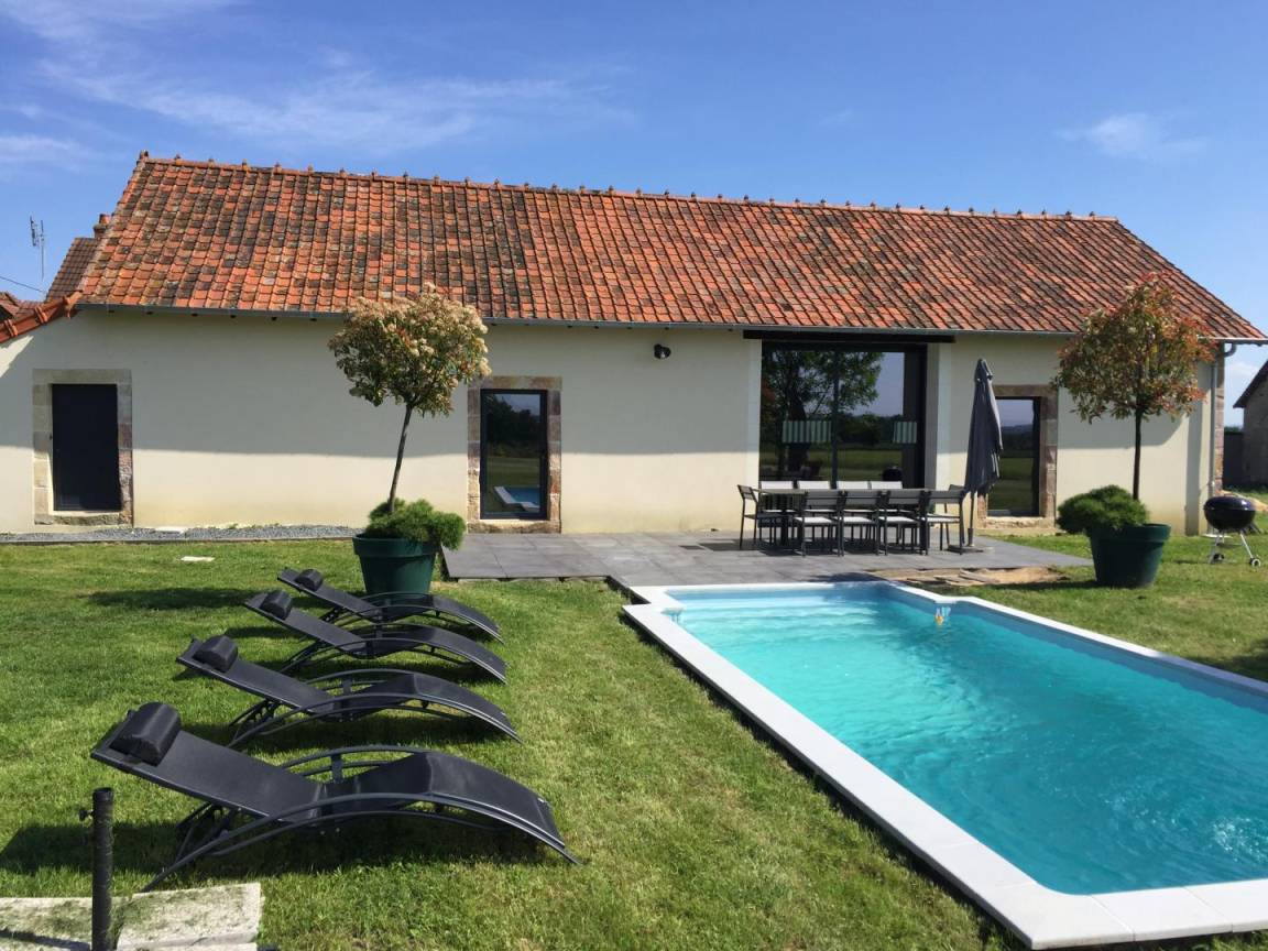 Dieses alte Bauernhaus in einem kleinen Weiler, 18 km von Montluçon entfernt, wurde komplett restauriert und in eine erstklassige Gîte mit privatem Swimmingpool und Wellnessbereich (Spa, Sauna und Fitnessgeräte) umgewandelt. Sie werden dieses Haus mit seiner nüchternen und modernen Dekoration und seinem Äußeren genießen. 3000m²). Der ideale Ort für einen Aufenthalt, der Komfort, Ruhe und Entspannung im Herzen des Bourbonnais verbindet. Das Ganze ist für Gäste komplett privatisiert. Erdgeschoss: Küche, Essbereich, Wohnzimmer mit Holzofen, 1 Schlafzimmer-Suite (1 Bett 160) mit Badezimmer (Dusche, Badewanne, separates WC) WC, Waschküche. Obergeschoss: ein Schlafzimmer (1 Bett 160 x 200) mit eigenem Duschbad und WC, 1 Schlafzimmer (2 Einzelbetten 80 x 200), 1 Schlafzimmer (2 Betten 90 x 200), Duschbad (Dusche), WC. Die Schlafzimmer im Obergeschoss sind klimatisiert. Elektroheizung. Wald von Tronçais 30 km. Vallon-en-Sully (Autobahnausfahrt A71) in 12 km Entfernung.
