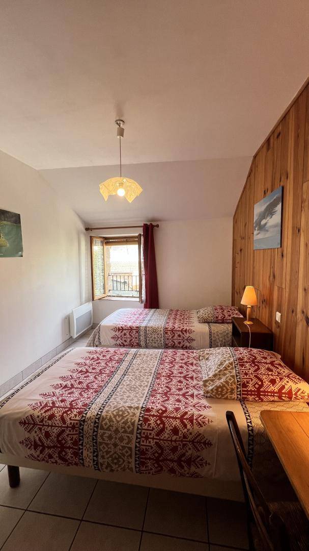 Über einen separaten Eingang gelangen Sie in eine Küche, die zum Wohn-Esszimmer hin offen ist und so einen einladenden Raum schafft. Eine Holztreppe führt ins Obergeschoss, wo Sie zwei komfortable Schlafzimmer mit jeweils zwei Einzelbetten (90 x 200) sowie ein Badezimmer mit eigenem WC vorfinden. Bitte beachten Sie, dass für die Heizung zusätzliche Kosten anfallen.