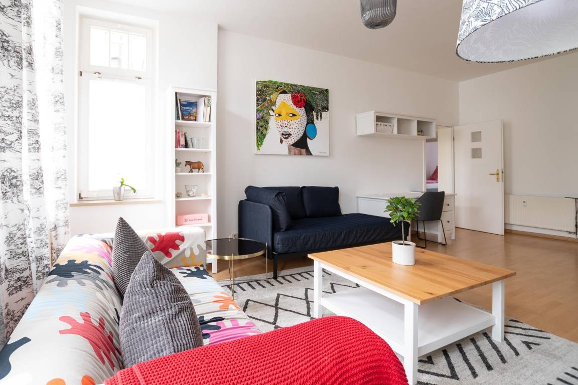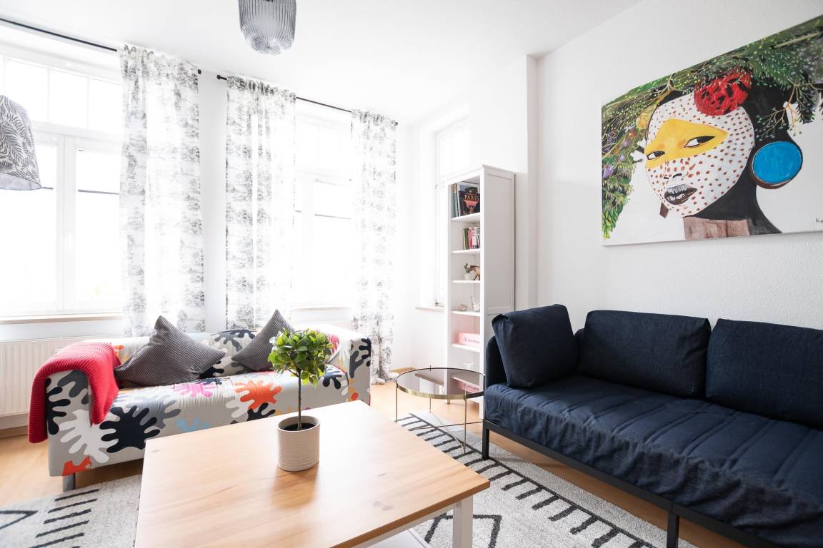 In unserem gemütlichen Ferienapartment "Hübschmannstraße" können bis zu 6 Personen einen erholsamen Urlaub in Chemnitz verbringen. Das Apartment erstreckt sich über 105 m² im 3. OG des Hauses. Es verfügt über 2 Schlafzimmer und 1 Badezimmer, um Ihnen ausreichend Platz und Komfort zu bieten.