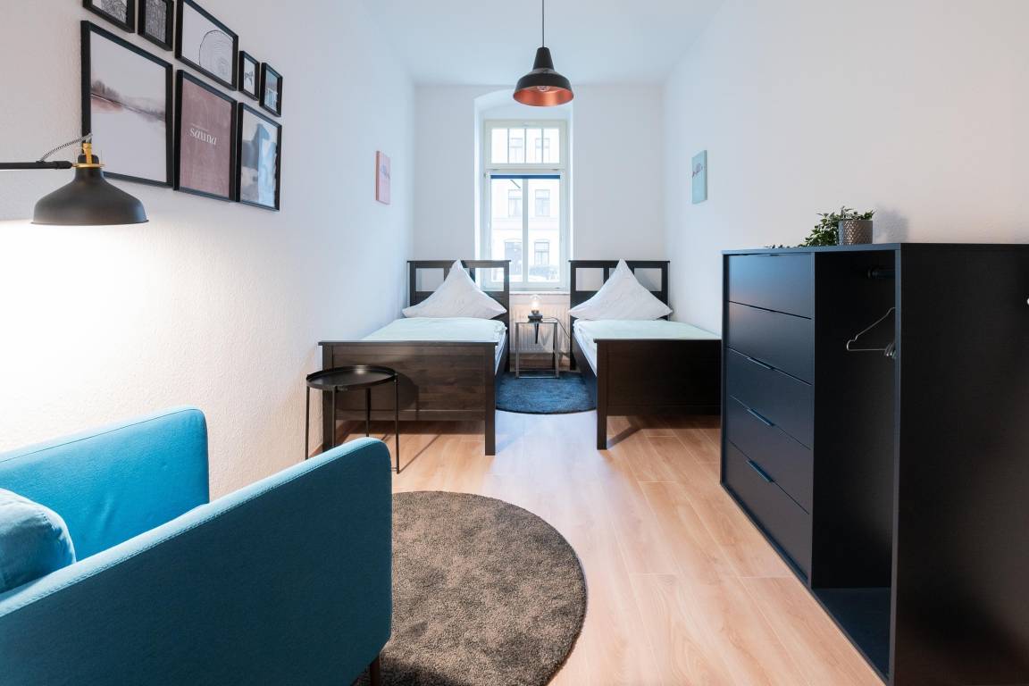In unserem gemütlichen Ferienapartment "Rudolf-Marek-Straße" können bis zu 5 Personen einen erholsamen Urlaub in Chemnitz verbringen. Das Apartment erstreckt sich über 68m² im Erdgeschoss des Hauses. Es verfügt über 2 Schlafzimmer und 1 Badezimmer, um Ihnen ausreichend Platz und Komfort zu bieten. In einem Schlafzimmer befindet sich ein Doppelbett, 2 weitere Einzelnetten sind im 2. Schlafzimmer zu finden. Das Wohnzimmer ist zusätzlich mit einem gemütlichen Tagesbett ausgestattet.