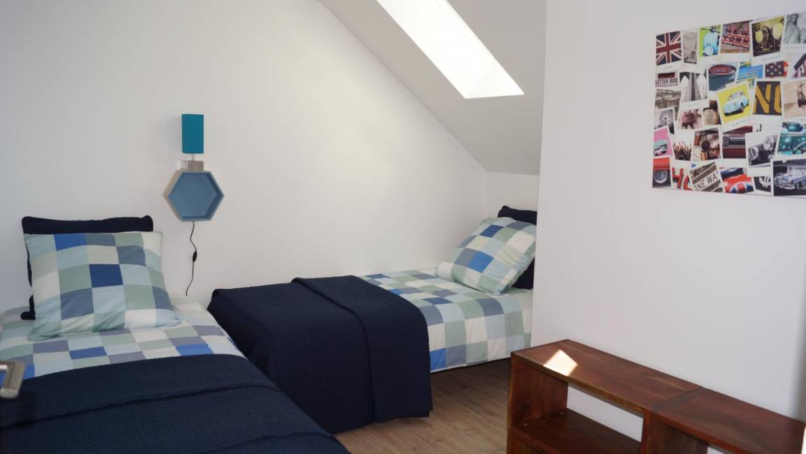 Obergeschoss: ein Schlafzimmer mit zwei Einzelbetten (90 cm), zwei Schlafzimmer mit einem Doppelbett (140 cm), Badezimmer mit WC.
