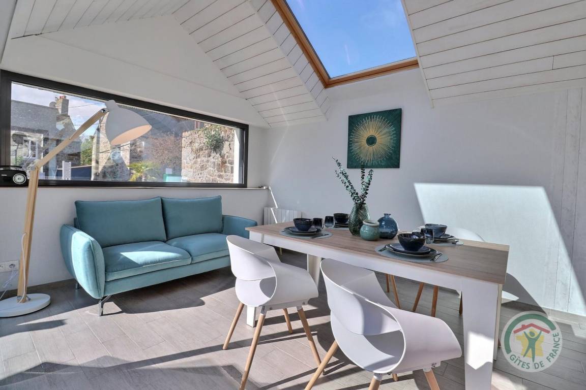 „Séjour enchanteur dans un gîte particulièrement bien placé, face mer et plage, pas de vis à vis. Mais ce calme n'empêche pas la proximité des plus beaux sites touristiques qui ne sont pas à plus de 25 kms (Mont St Michel, Cancale, Saint Malo). Nous avons poussé jusqu'au Cap Fréhel et Dinan également, la région est tout simplement magnifique et les gens chaleureux. Jean-René et Stéphanie sont des hôtes charmants, plein d'attention au point que l'on se sent presque comme des amis malgré la relation commerciale. Le gîte est fonctionnel, confortable, très lumineux, agréable à vivre, on se sent déjà chez soi en entrant. Le secteur est très calme, idéal pour se ressourcer. Il est évident que nous reviendrons dans la région prochainement et très certainement dans le gîte de Stéphanie et Jean-René.“