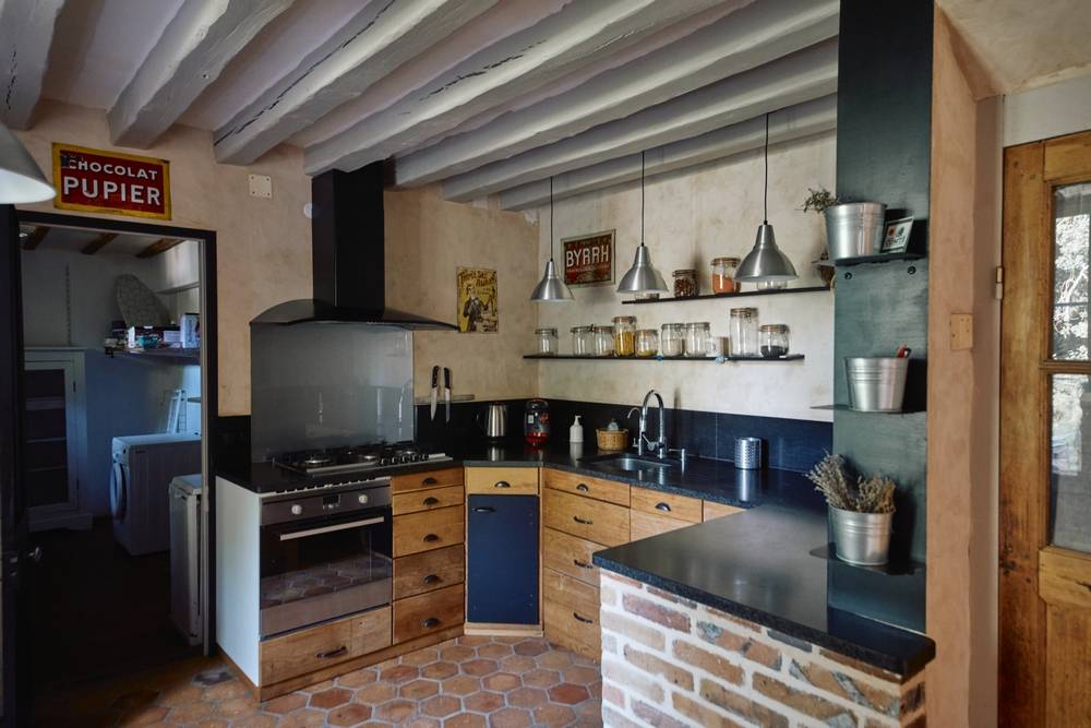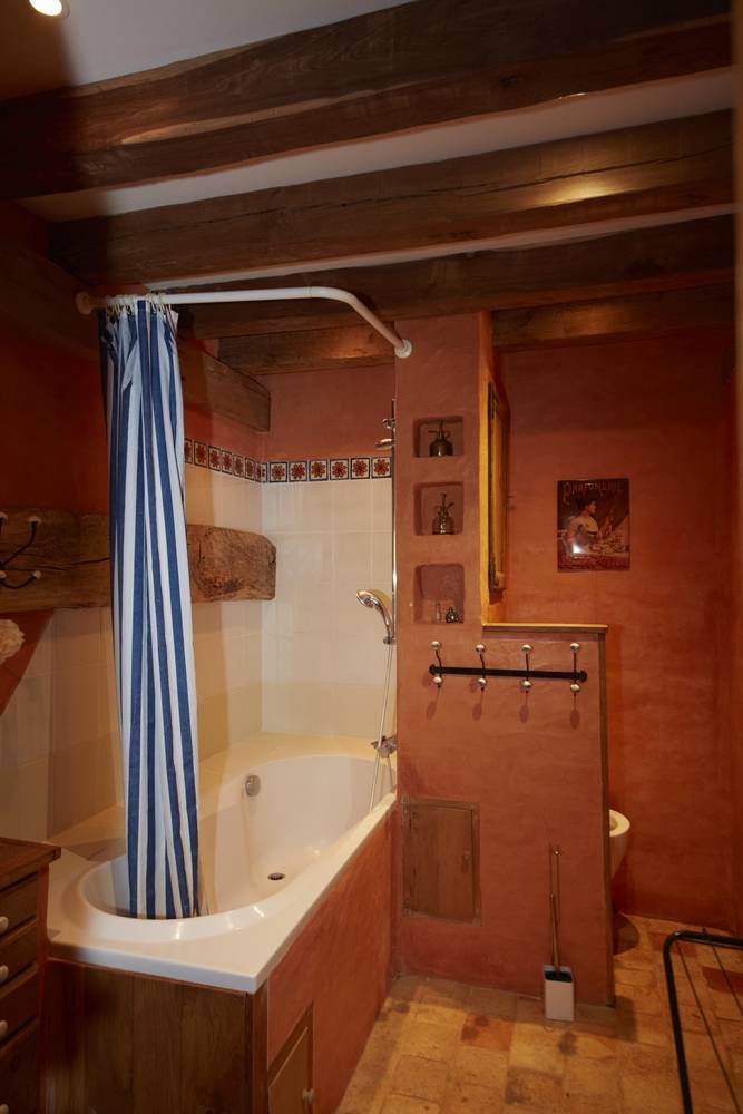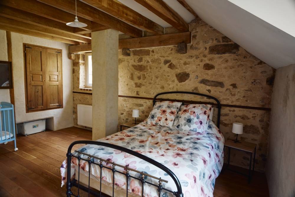 - Es handelt sich um eine renovierte Steinscheune mit hochwertigen Materialien: sichtbare Balken, Terrakottafliesen und ländliche Einrichtung.