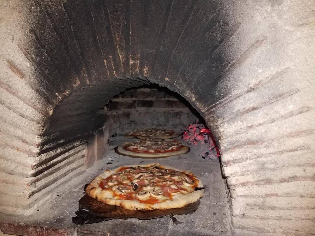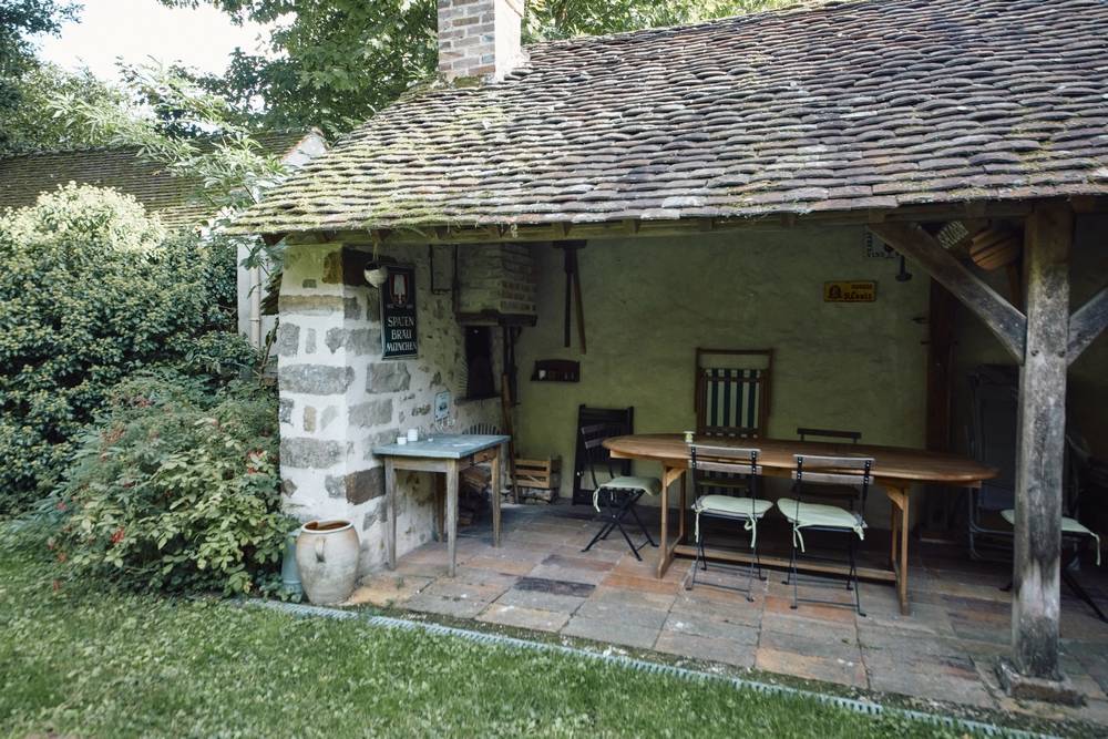 - Eine überdachte Terrasse mit Gartenmöbeln ist ideal, um frisch gebackene Pizza aus dem Brotbackofen zu genießen.