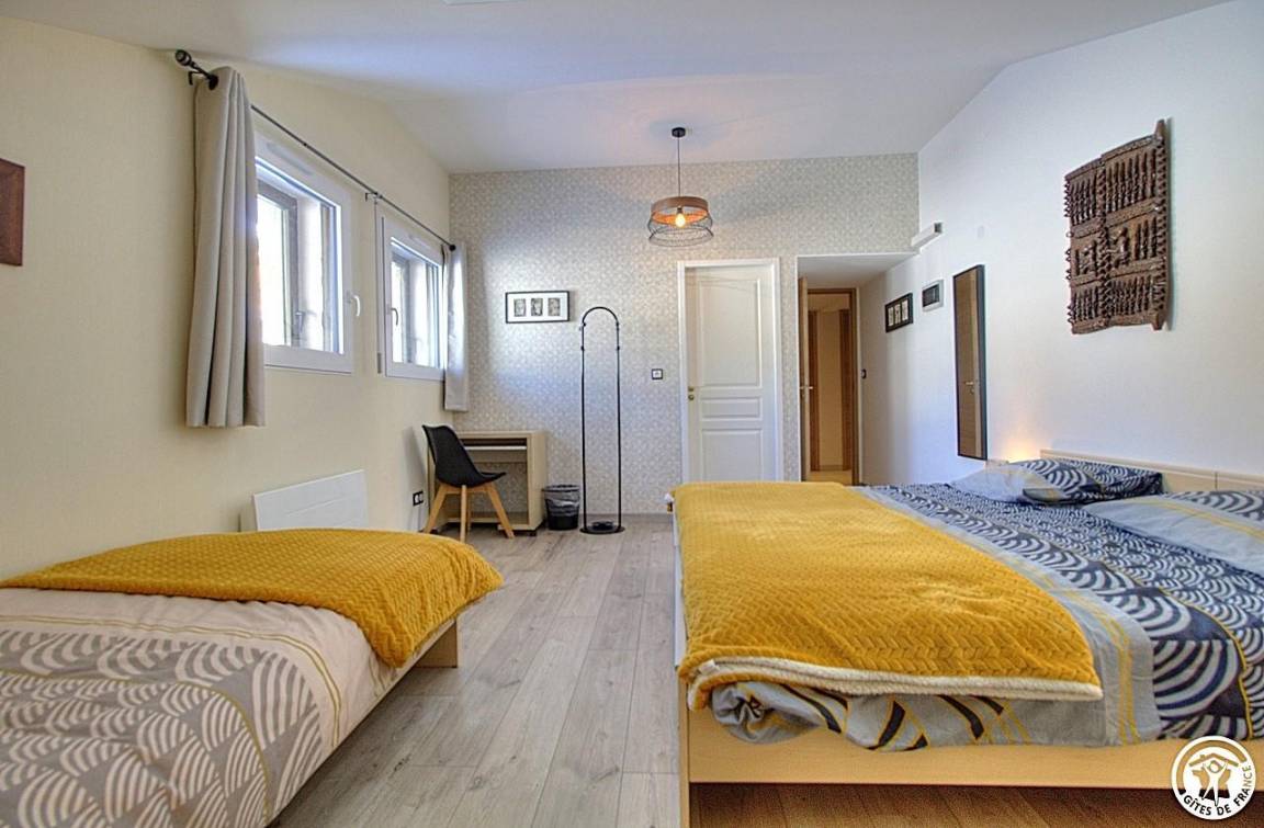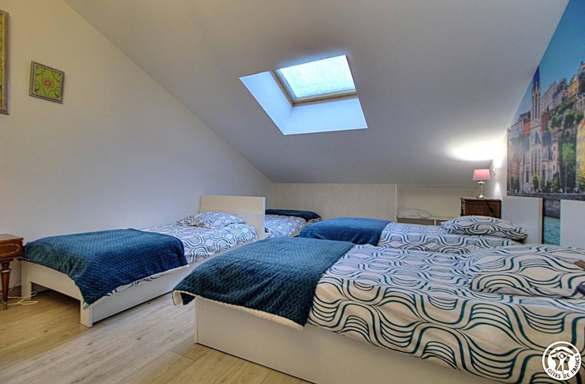 Mplett renoviert, um Ihnen einen komfortablen und gemütlichen Aufenthalt zu ermöglichen. Sie werden die geräumigen Schlafzimmer mit jeweils eigenem Bad und den Wohnbereich, der sich ideal für gemeinsame Mahlzeiten eignet, zu schätzen wissen. Der Eingang wird zwar mit anderen Gästen geteilt, aber das gesamte Erdgeschoss steht Ihnen zur Verfügung. Sie betreten ein großes Apartment mit einer voll ausgestatteten Küche, die sich zum Essbereich hin öffnet, und einem Wohnzimmer mit Blick in die Natur. Ein Flur führt zum Schlafbereich mit seinen vier thematisch gestalteten Schlafzimmern. Die Zimmer Ouaga und Lissabon bieten Platz für drei Personen und verfügen jeweils über zwei zusammengeschobene Einzelbetten mit Matratzenauflage und ein Einzelbett; das Zimmer Lyon hat vier Einzelbetten; und das Familienzimmer Bali ist ein Maisonette-Zimmer mit zwei zusammengeschobenen Einzelbetten mit Matratzenauflage im Erdgeschoss und drei Einzelbetten im Obergeschoss. Jedes Schlafzimmer verfügt über ein ei