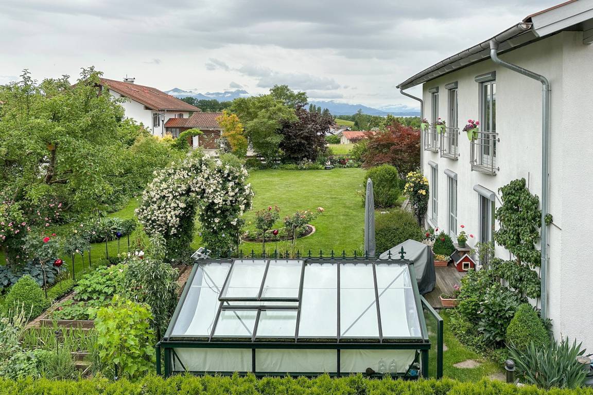 Besonders schön sind die zwei möblierten Balkone, die Ausblicke ins Grüne und auf die Berge bieten. WLAN und Spülmaschine sorgen für Komfort, während die Nähe zum Chiemsee ideale Voraussetzungen für entspannte und aktive Urlaubstage schafft.