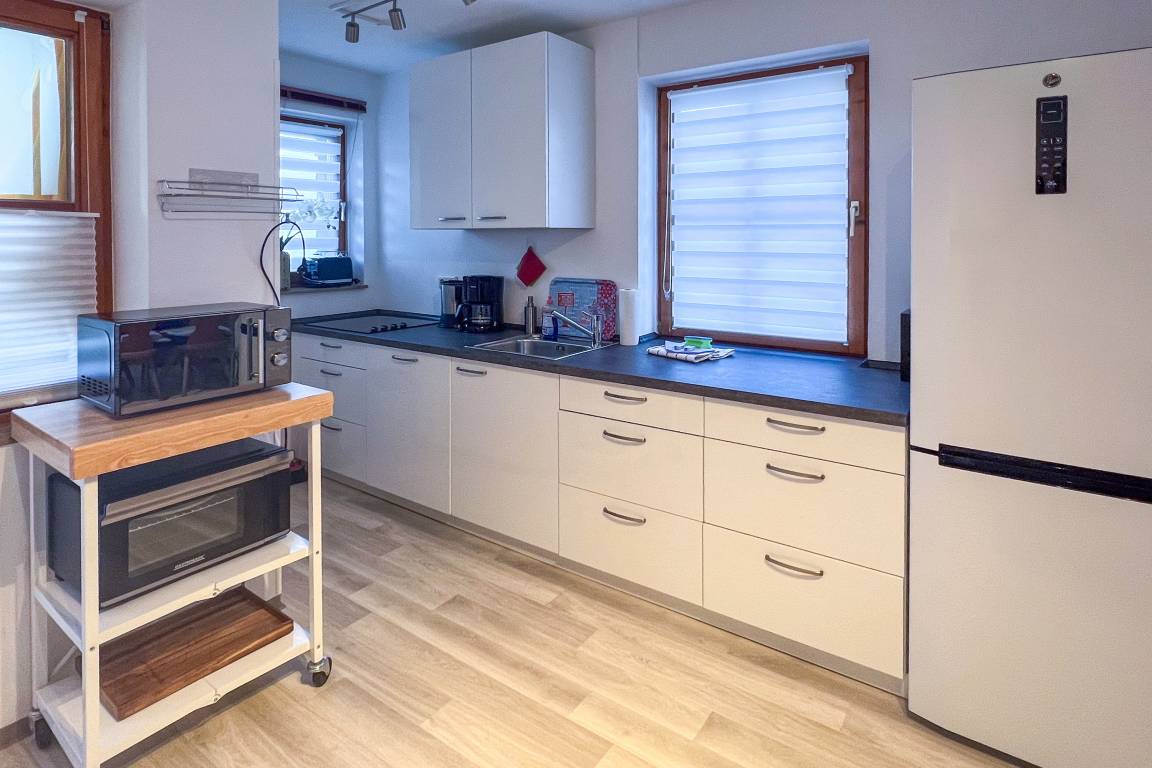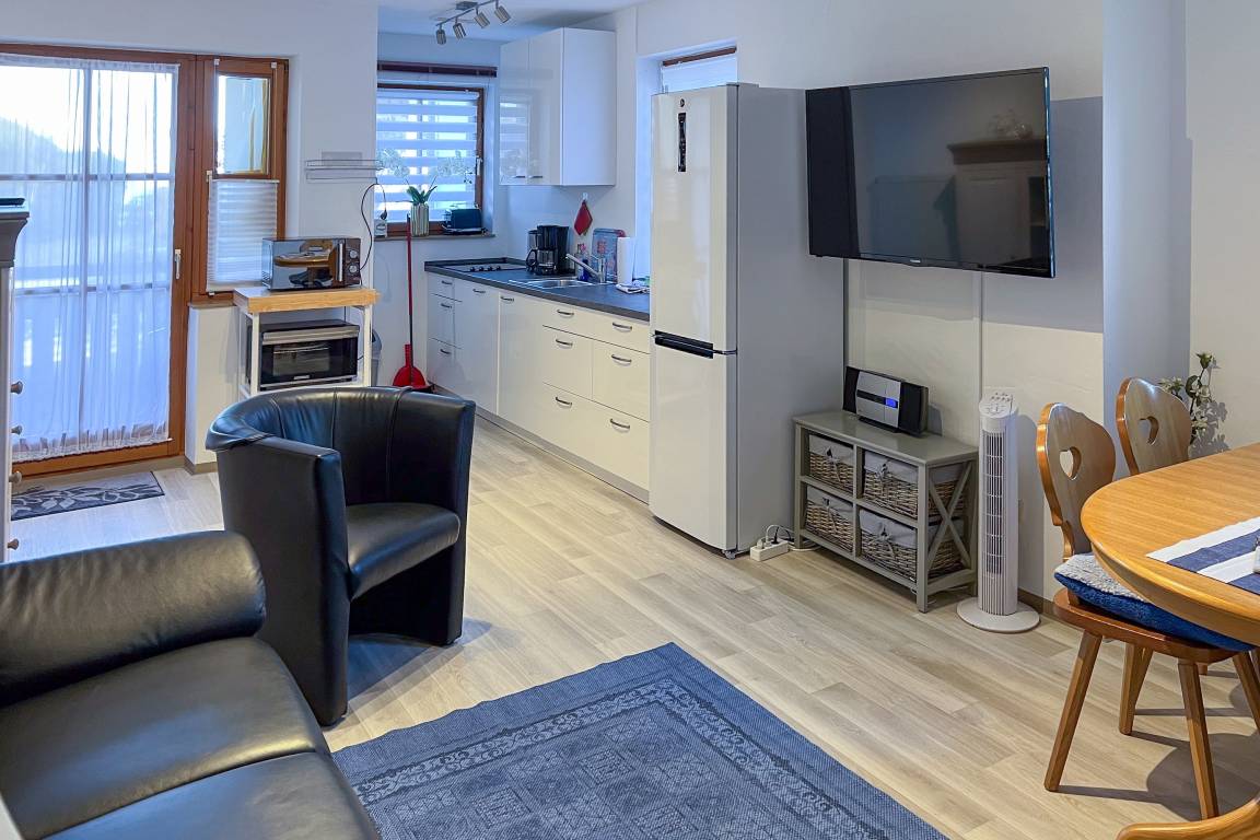 Der Balkon mit Blick ins Grüne lädt zum gemeinsamen Entspannen ein – sei es beim Frühstück oder in den ruhigen Abendstunden. Die moderne Ausstattung mit WLAN, Geschirrspüler und Flachbild-TV sorgt für einen angenehmen Familienurlaub. Hunde sind erlaubt, ein eigener Parkplatz steht ebenfalls zur Verfügung.