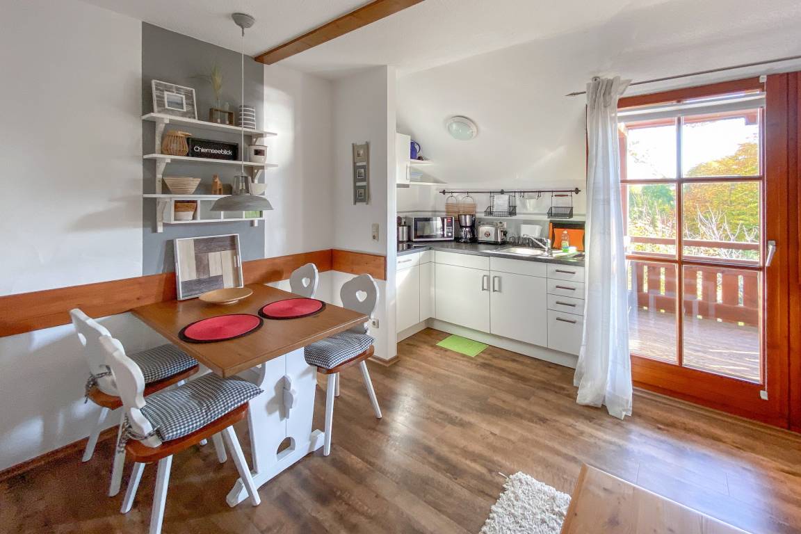 Die Ferienwohnung „Chiemsee Blick" ist die perfekte Wahl für alle, die ihren Urlaub gemeinsam mit ihrem vierbeinigen Begleiter am Chiemsee verbringen möchten. Die helle, 39 m² große Wohnung bietet komfortabel Platz für bis zu 4 Personen und verfügt über ein separates Schlafzimmer, einen gemütlichen Wohn- und Essbereich sowie ein Schlafsofa.