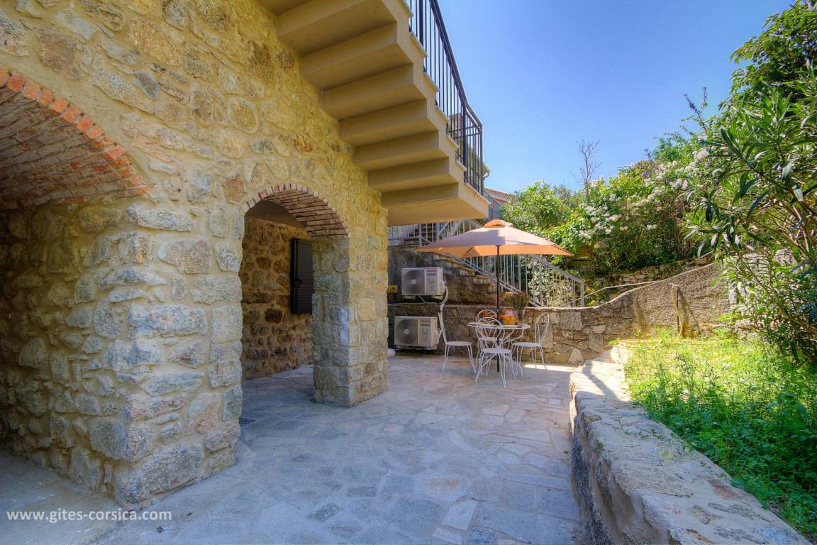 - Terrasse von 21 qm (Zugangstreppe zu den Ferienhäusern auf der Etage vor der Terrasse)
