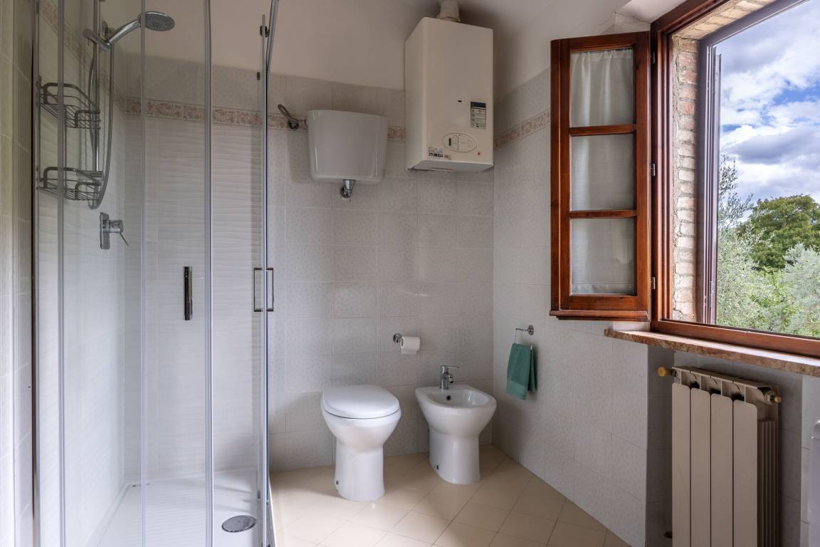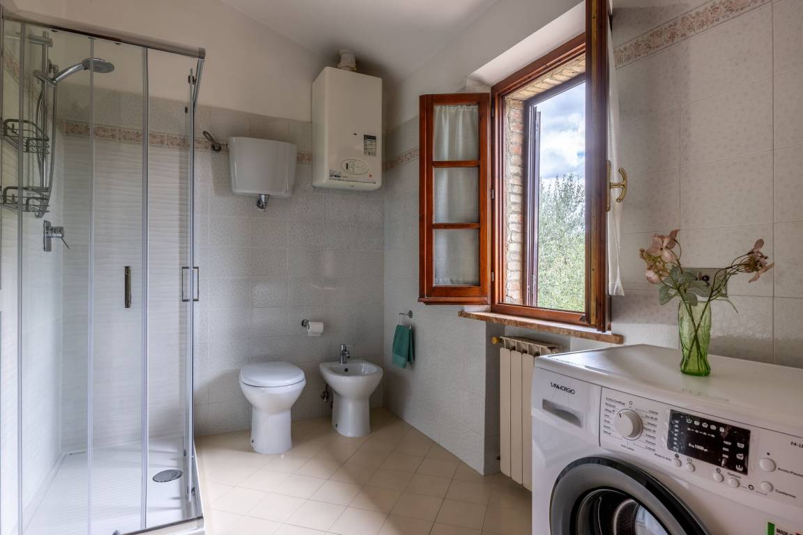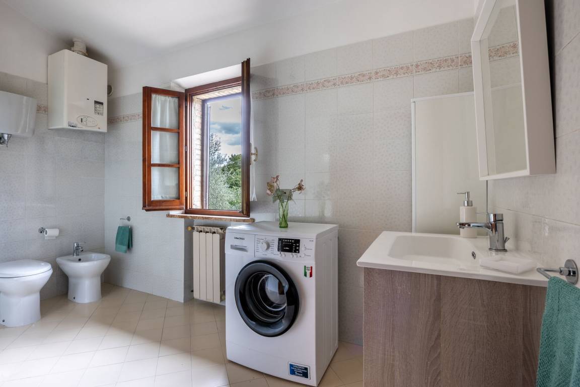 Badezimmer: Waschbecken, WC, Bidet, Dusche, Fön, Waschmaschine, WiFi Internet.