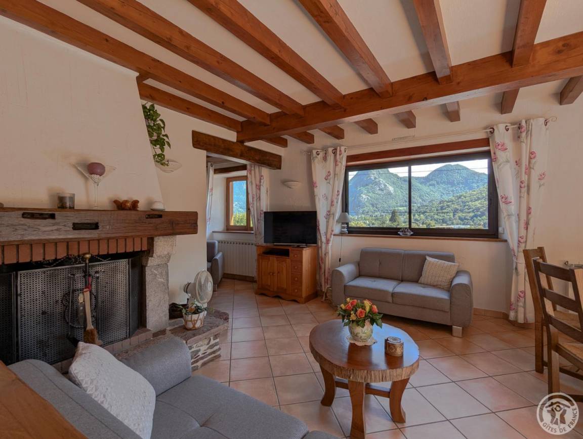 „Gîte en haut du village avec une vue magnifique sur les montagnes Ensemble très confortable avec de nombreuses dépendances Terrasse et petit jardin très appréciable en cette saison estivale“
