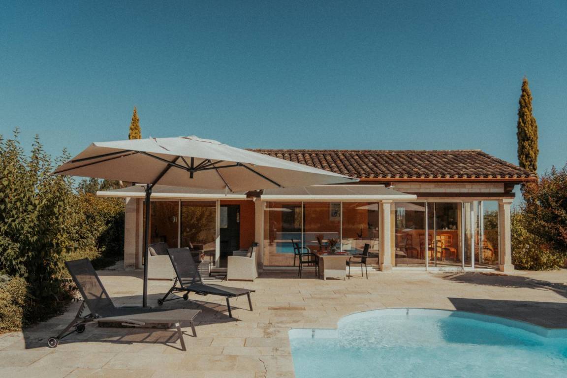 „Nous avons passé une semaine agréable dans cette belle région Le gîte est très bien équipé et confortable La clim est appréciable quand il fait très chaud !Et surtout la piscine est top Nous en avons bien profité Les propriétaires sont très sympathiques Merci pour leur accueil“