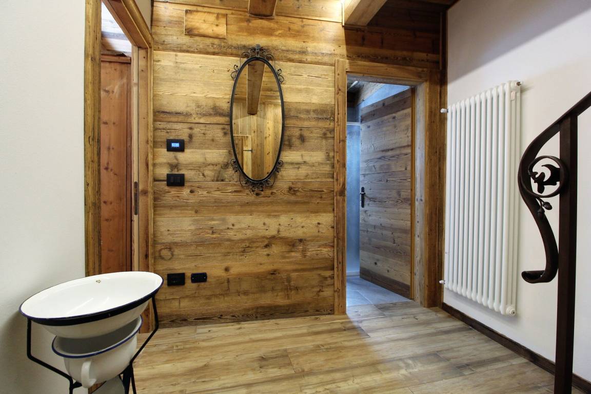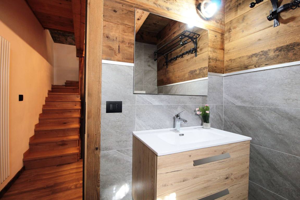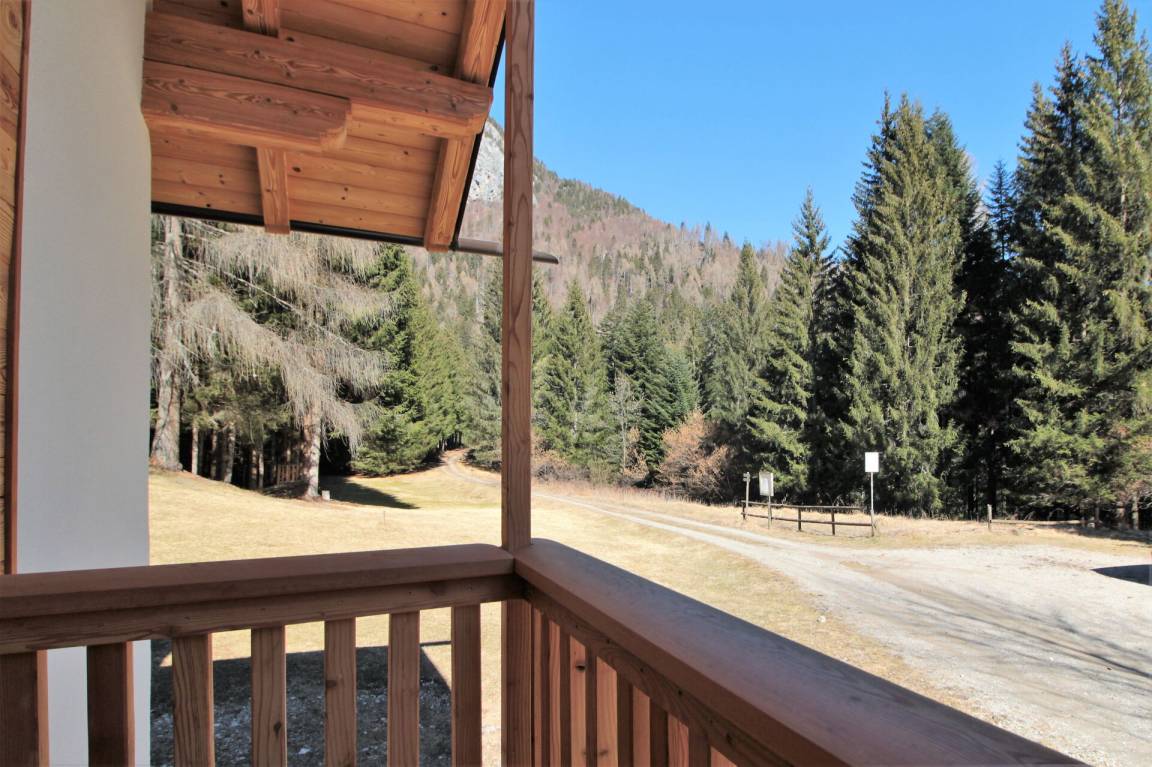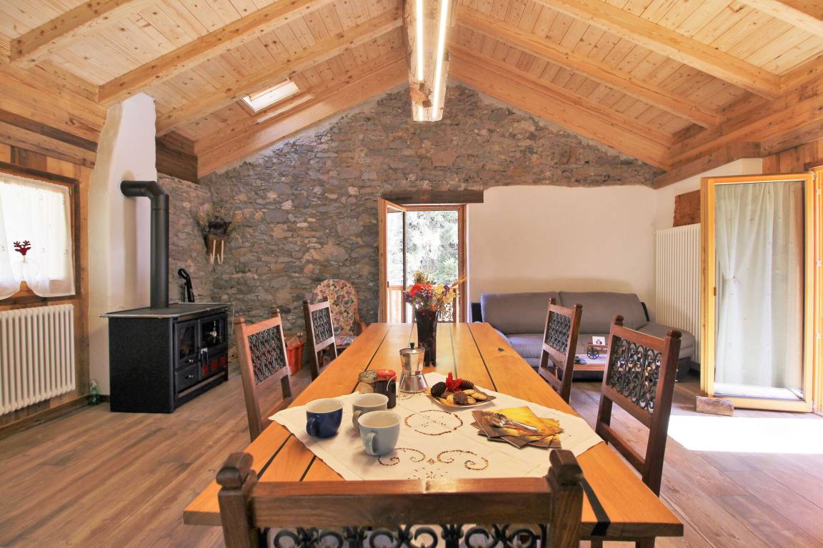 Wohnküche: gut ausgestattete Küche, Esstisch, Spülmaschine, Kühlschrank, Holzofen, Sofa, WiFi Internet, Ausgang auf den Balkon.