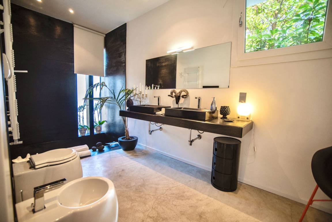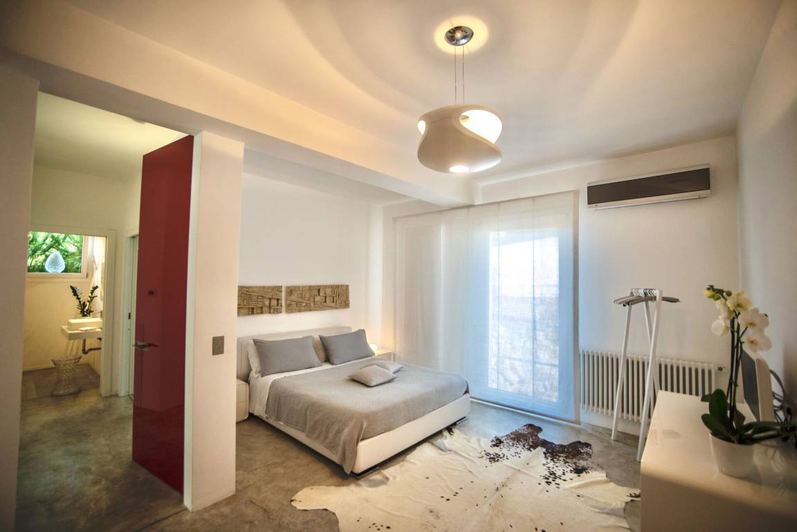 Schlafzimmer mit Bad: Doppelbett, WiFi Internet, Klimaanlage, Waschbecken, WC, Bidet, Badewanne, Dusche.