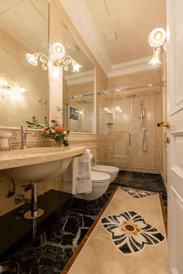 Badezimmer: Waschbecken, WC, Bidet, Dusche, WiFi Internet.