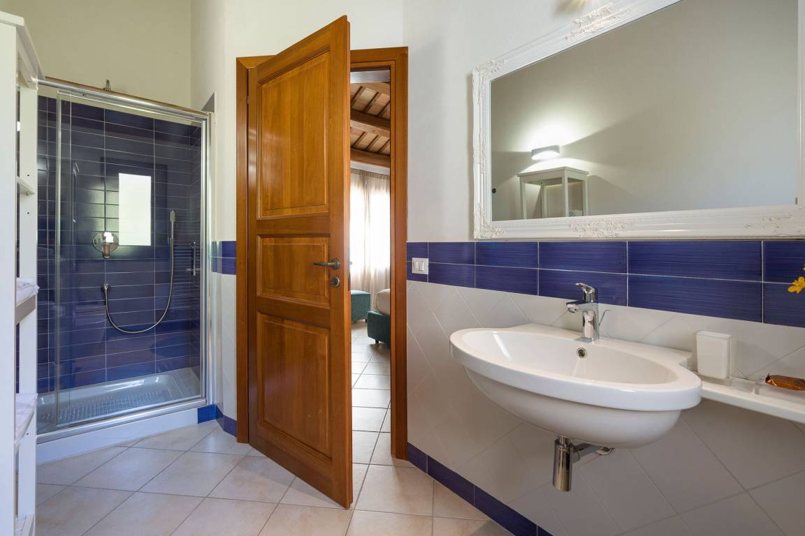 Schlafzimmer mit Bad 1: Doppelbett, Krippe, WiFi Internet, Internet, Klimaanlage, Satelliten-TV, Sessel, Waschbecken, WC, Bidet, Dusche, Fön.