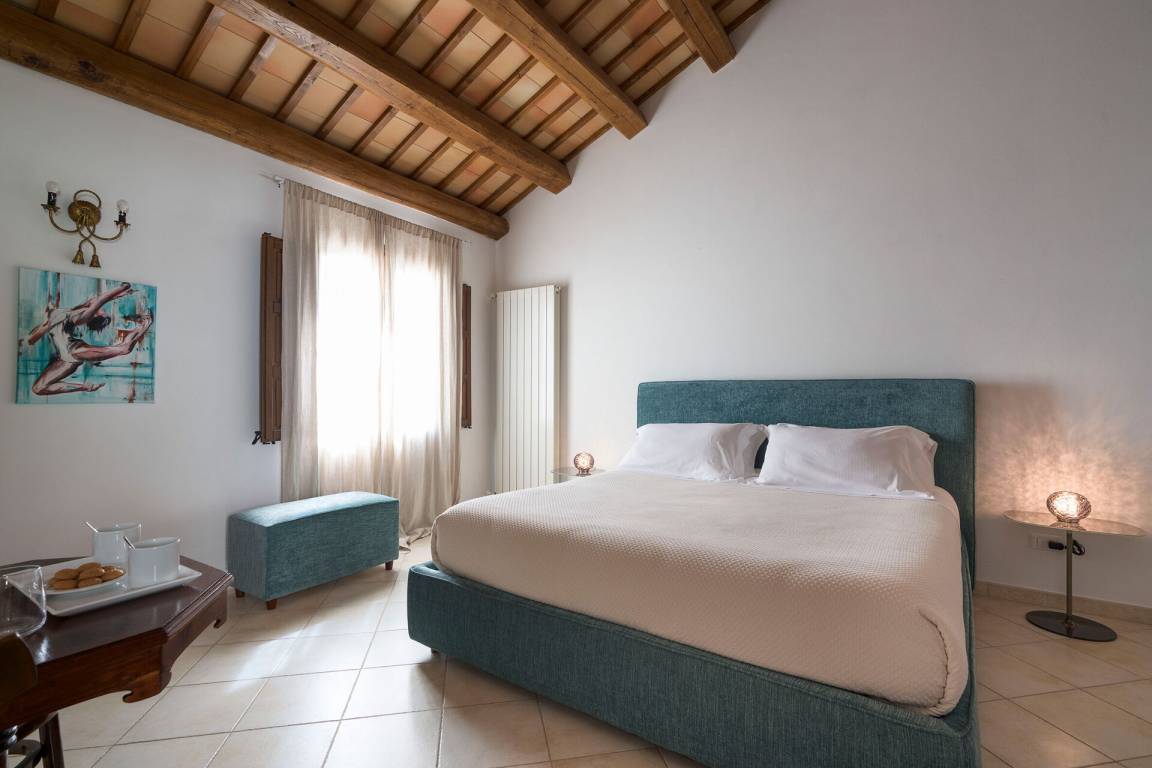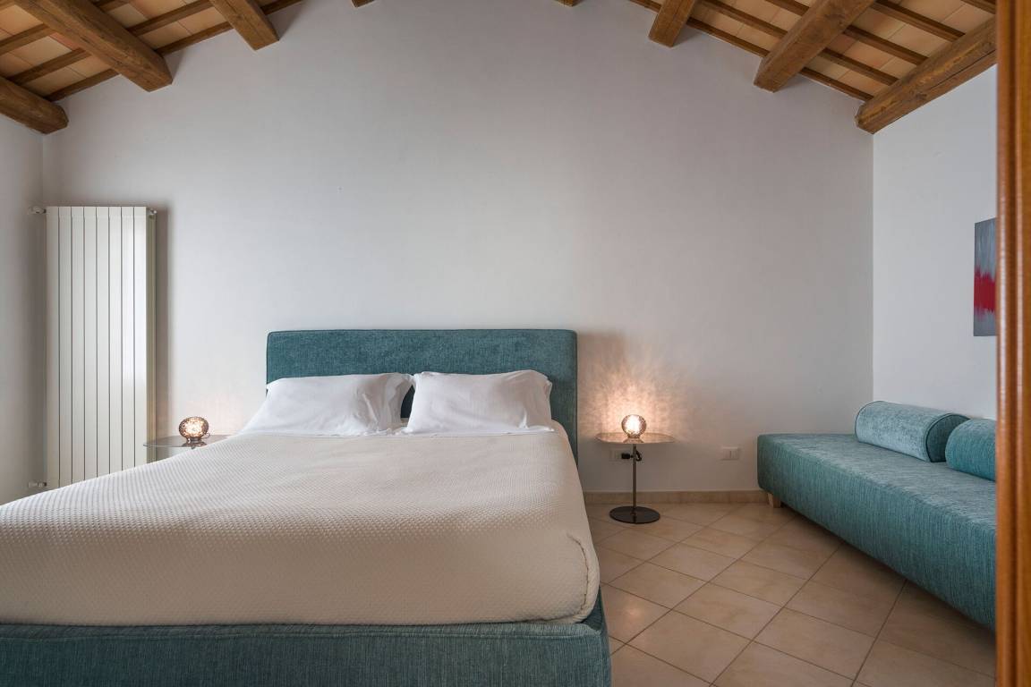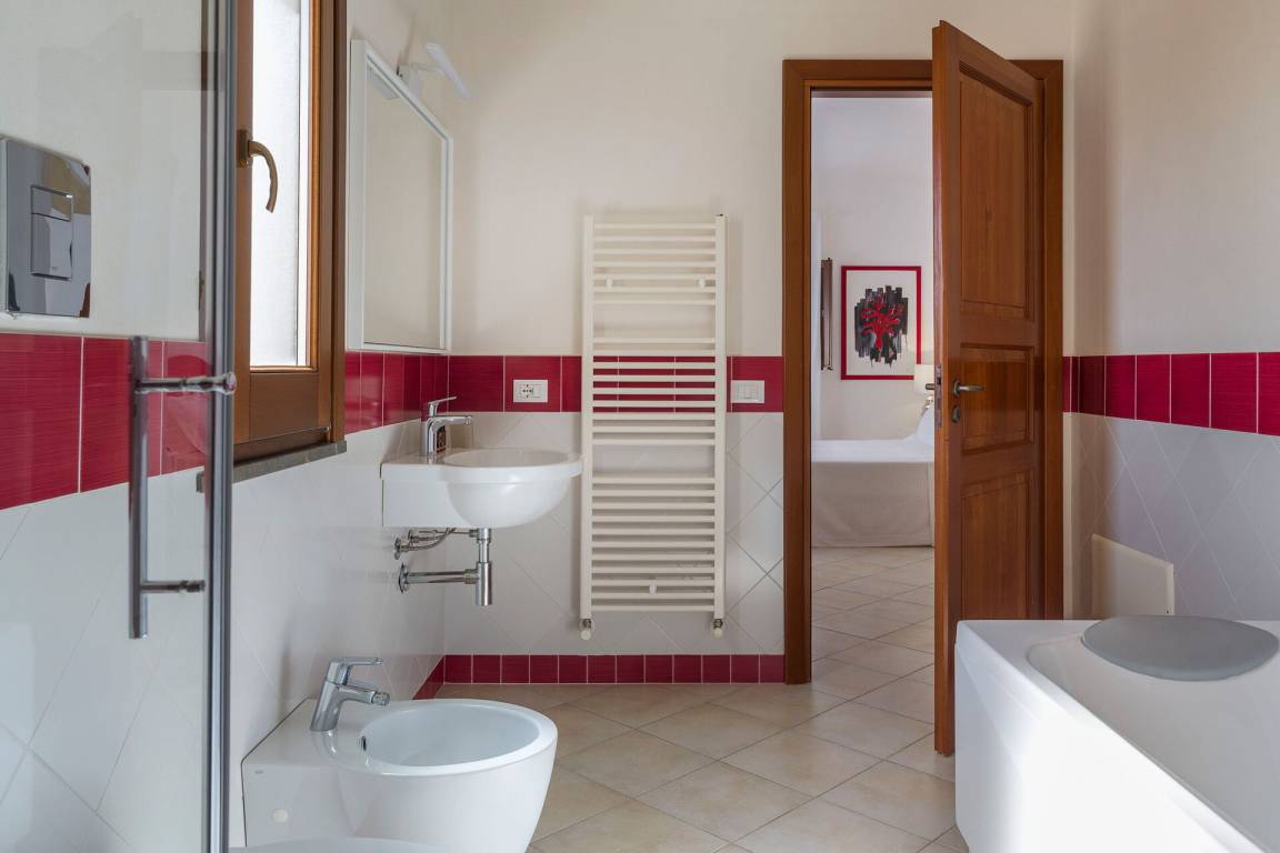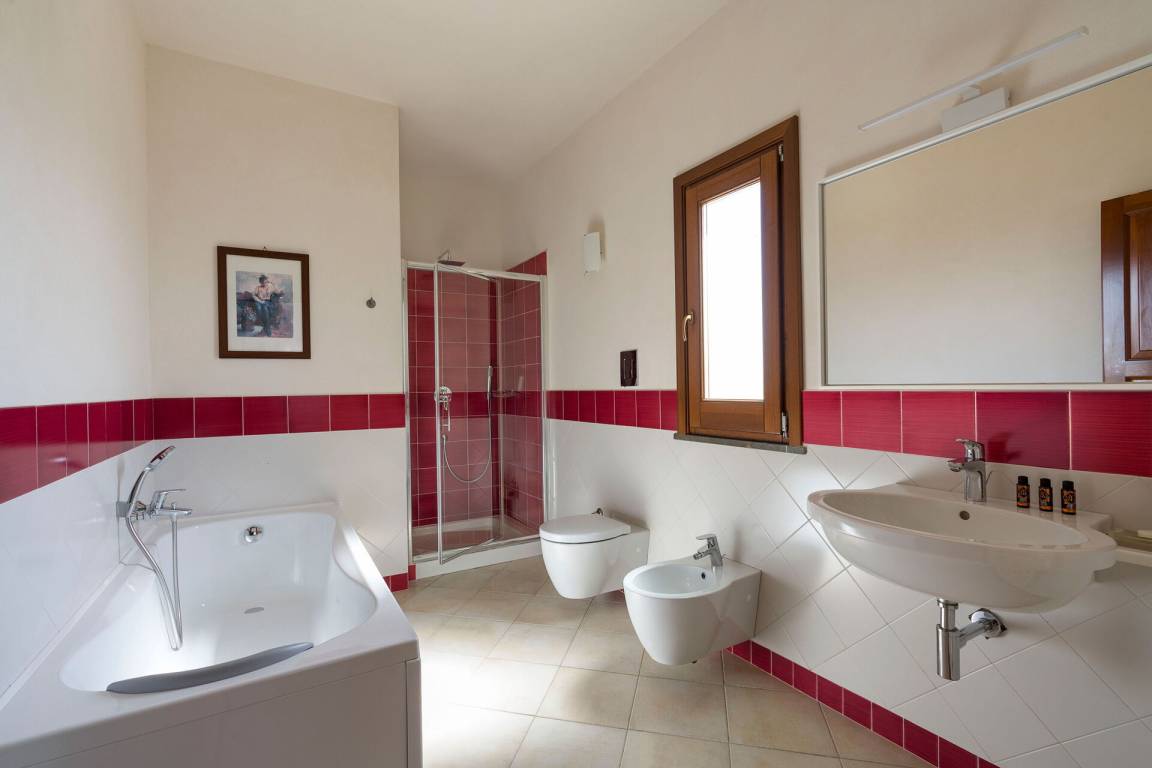 Schlafzimmer mit Bad: Doppelbett, WiFi Internet, Internet, Klimaanlage, Satelliten-TV, Sessel, Waschbecken, WC, Bidet, Badewanne, Dusche, Ausgang auf die Terrasse.