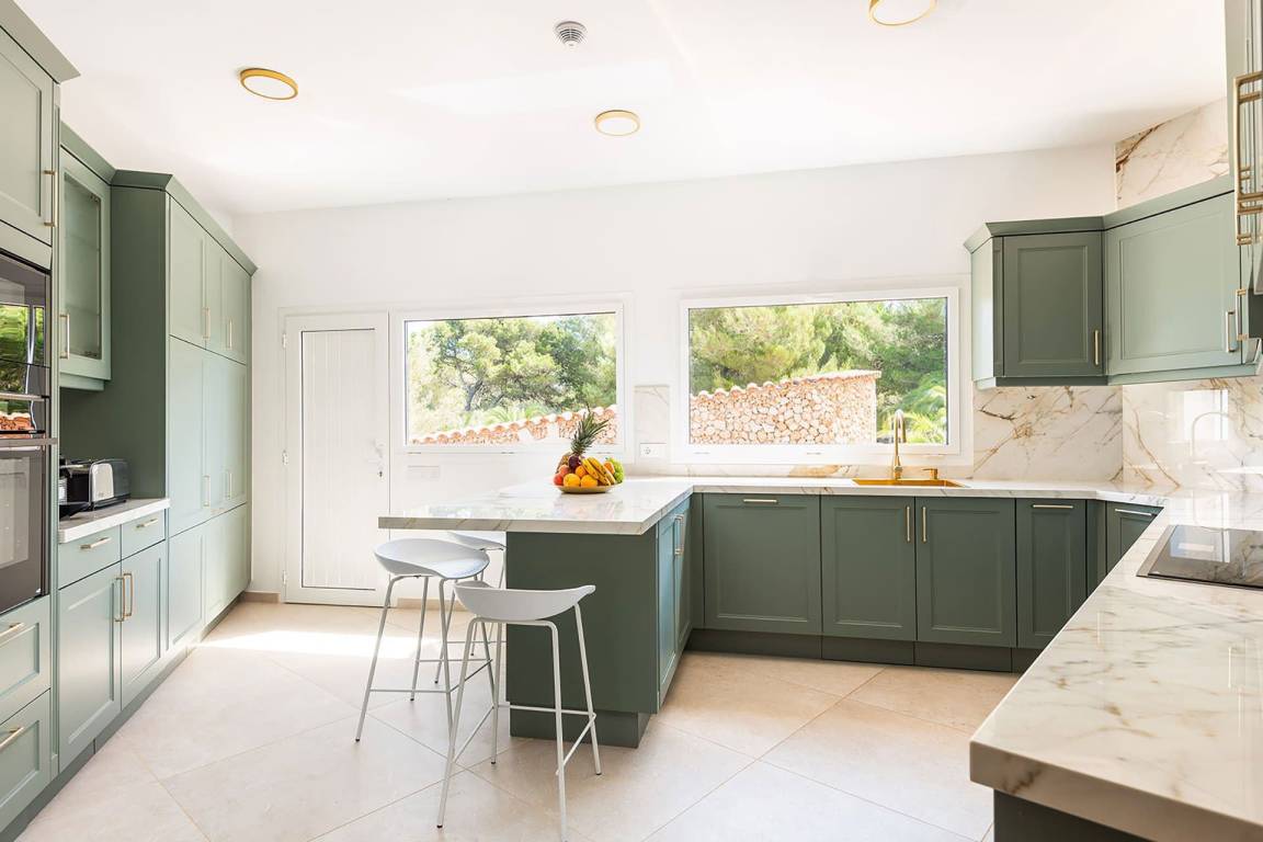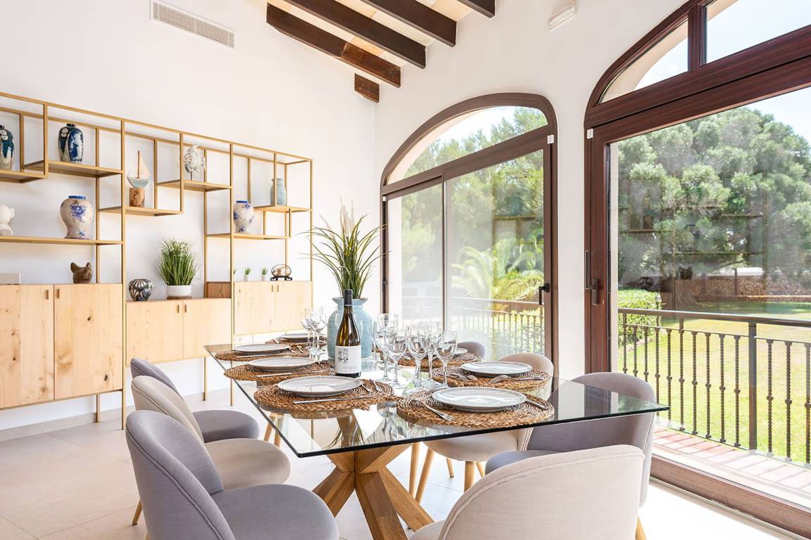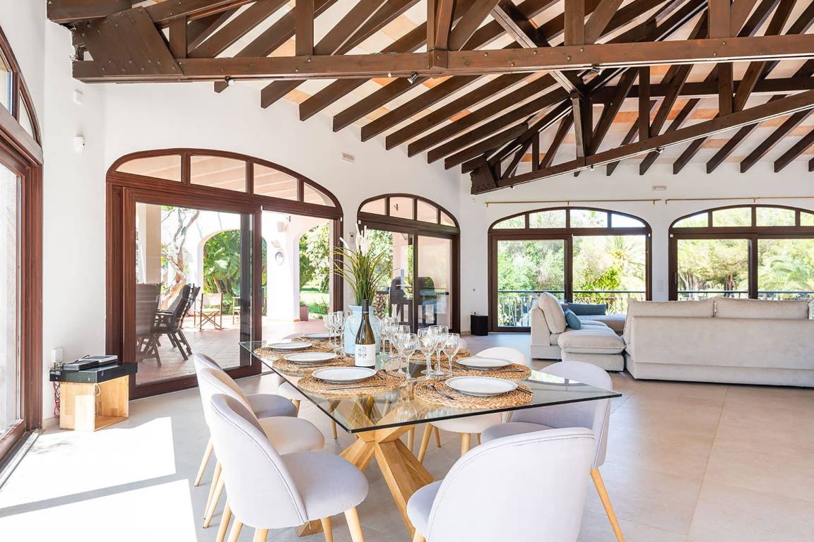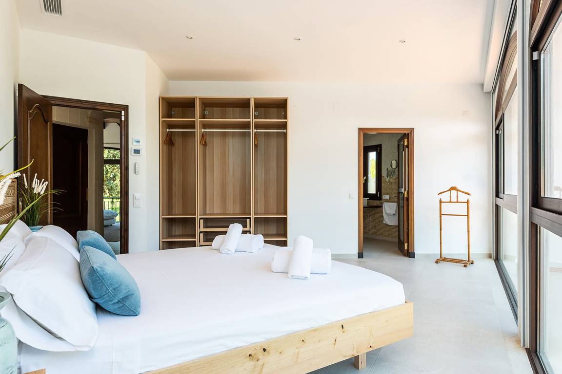 Die Villa bietet Platz für bis zu 9 Gäste und verteilt sich über mehrere Geschosse. Die Unterkunft verfügt über 4 Schlafzimmer und 3 Bäder. Die Schlafbereiche sind so angeordnet, dass alle Gäste einen erholsamen Aufenthalt genießen können. Die 3 Bäder sind elegant ausgestattet und von den Wohnbereichen sowie den Schlafzimmern leicht erreichbar.