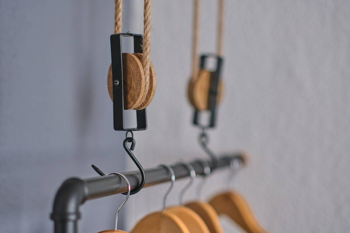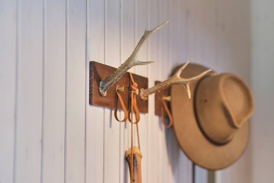 Für Ordnung ist ebenfalls gesorgt: Eine stilvolle Kommode und liebevoll selbst gebaute Aufhängemöglichkeiten des Hausherrn bieten ausreichend Stauraum und unterstreichen den besonderen Charme des Zimmers.