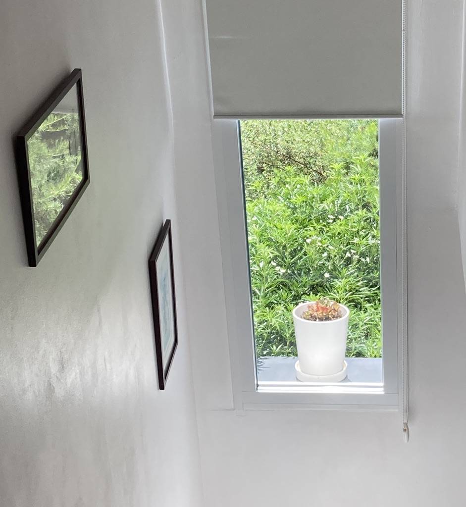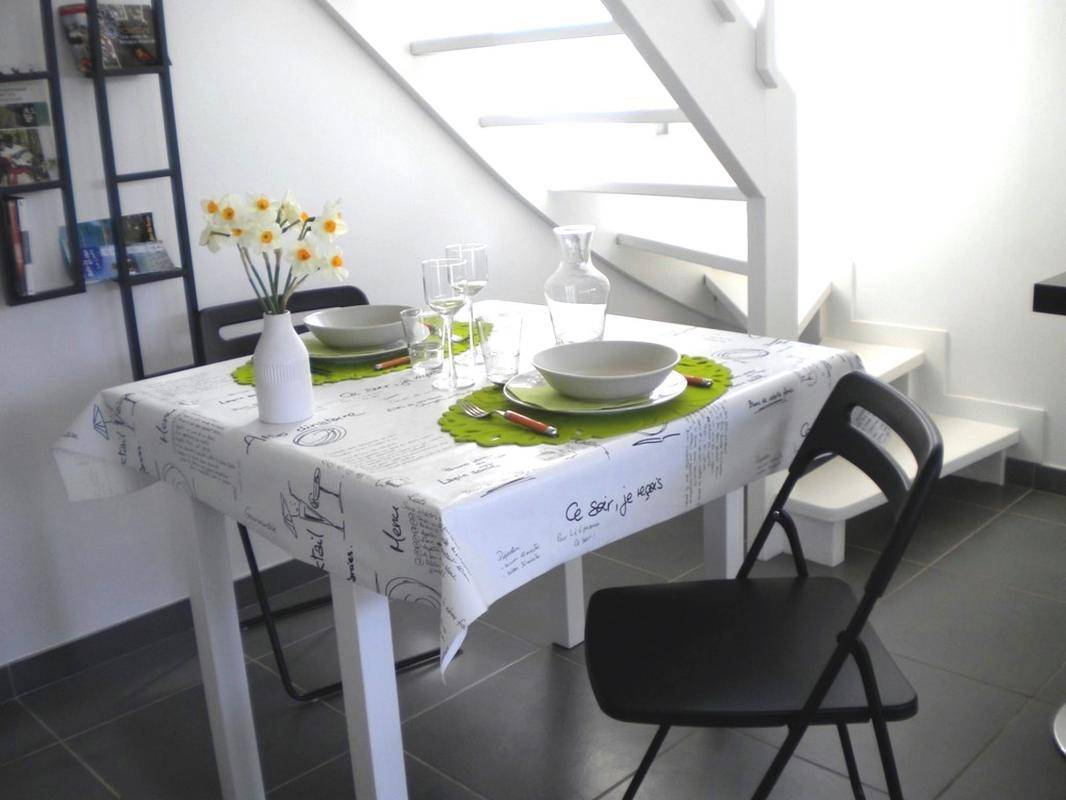 - Obergeschoss: 1 Schlafzimmer (140x190 Bett bei Ankunft gemacht) mit kleiner möblierter Terrasse, ein Duschbad mit WC.