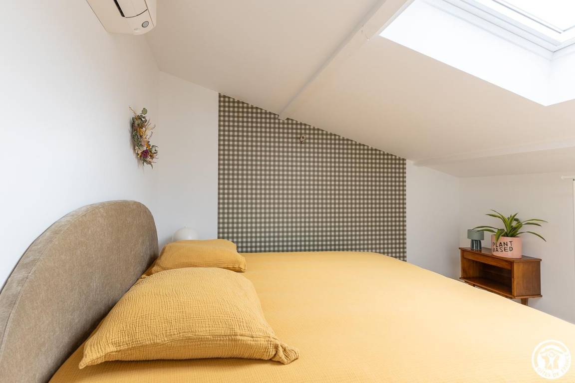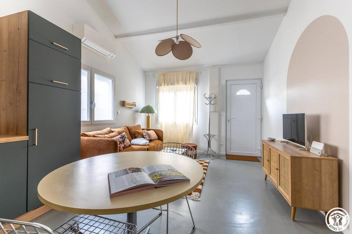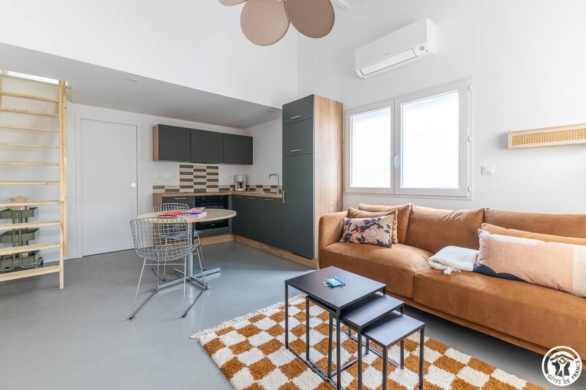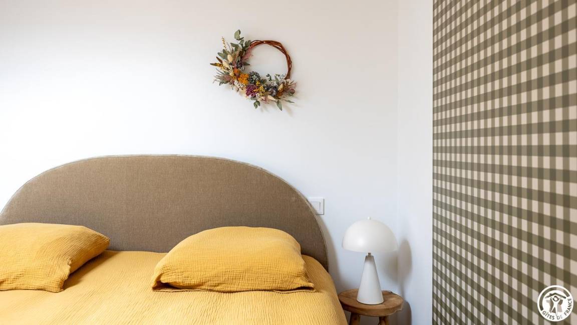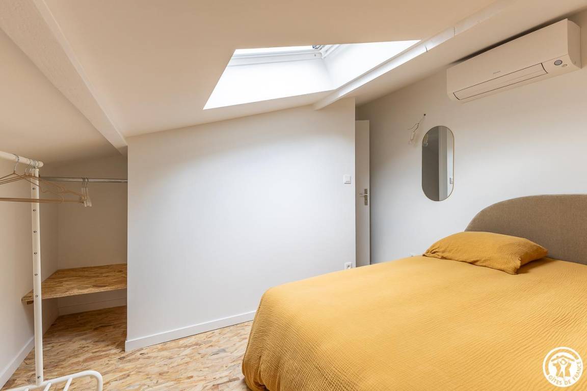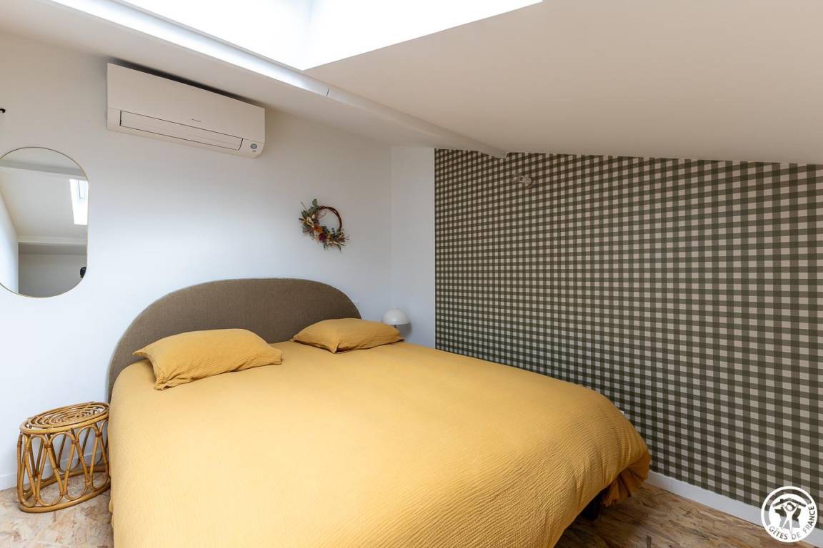 „Gîte calme, propre et bien équipé. Le garage et la climatisation sont des avantages très pratiques. Il faut cependant faire attention à ne pas se cogner la tête en montant l'échelle de meunier, et la climatisation juste au-dessus du lit fait beaucoup de lumière quand elle est allumée, ce qui peut être un peu gênant la nuit.“