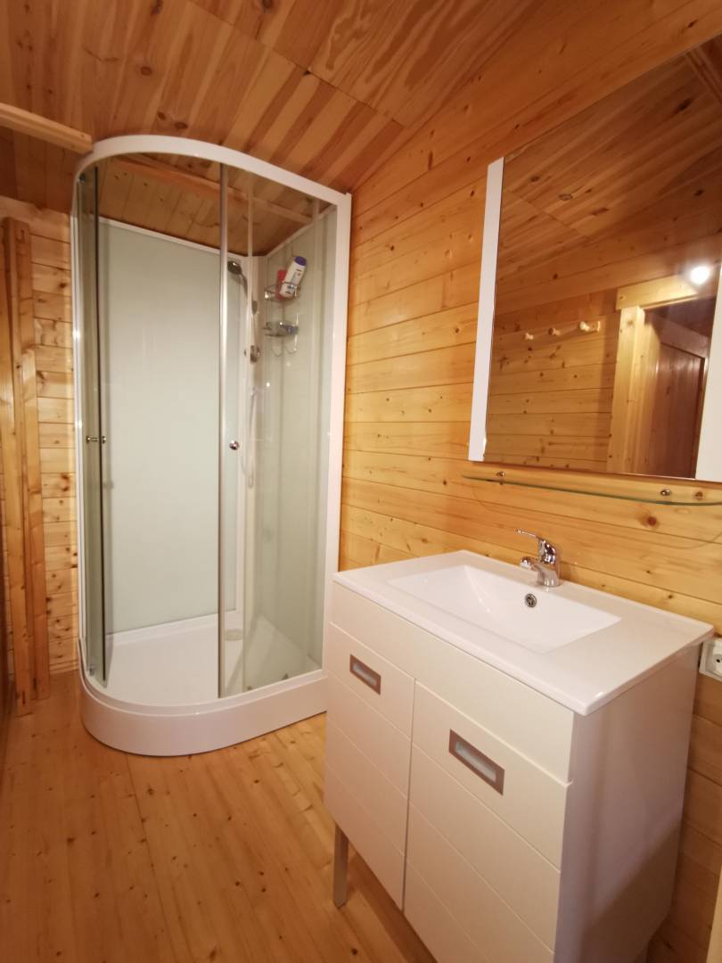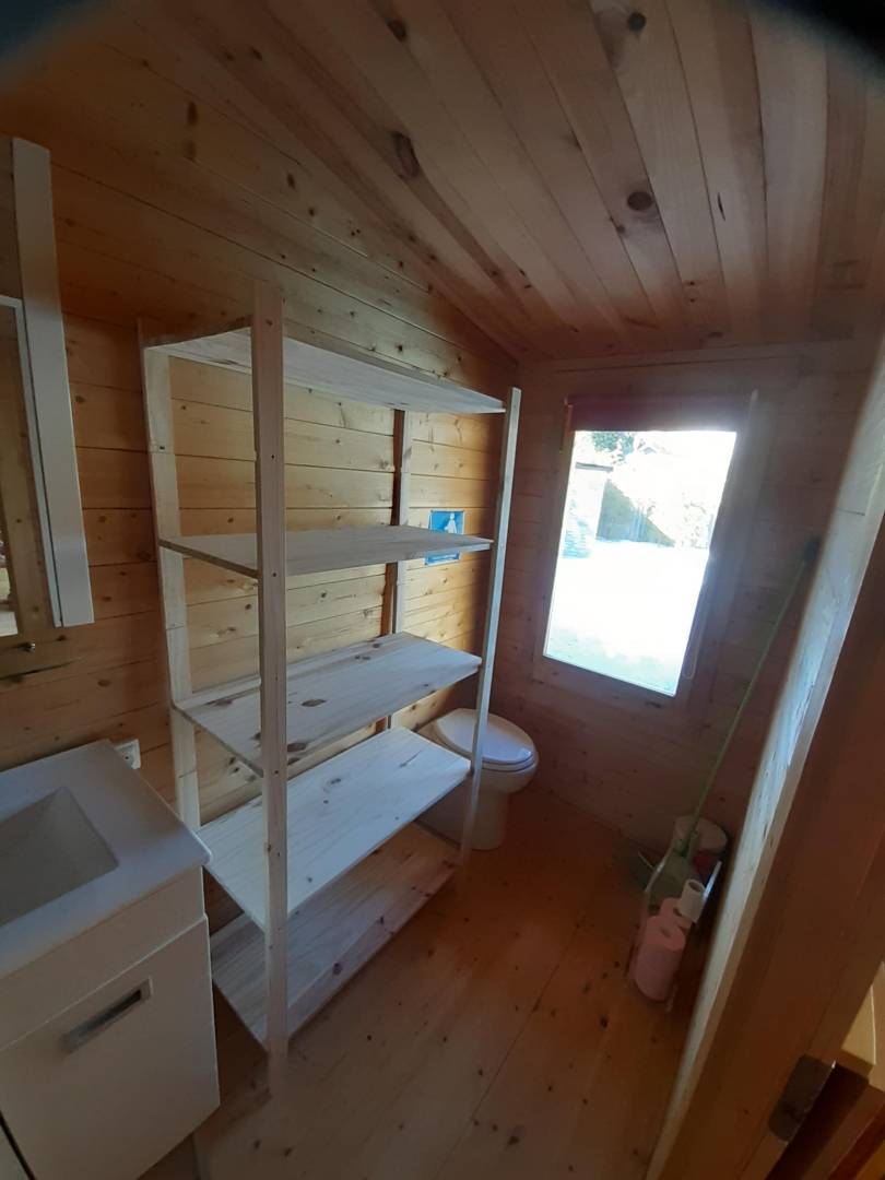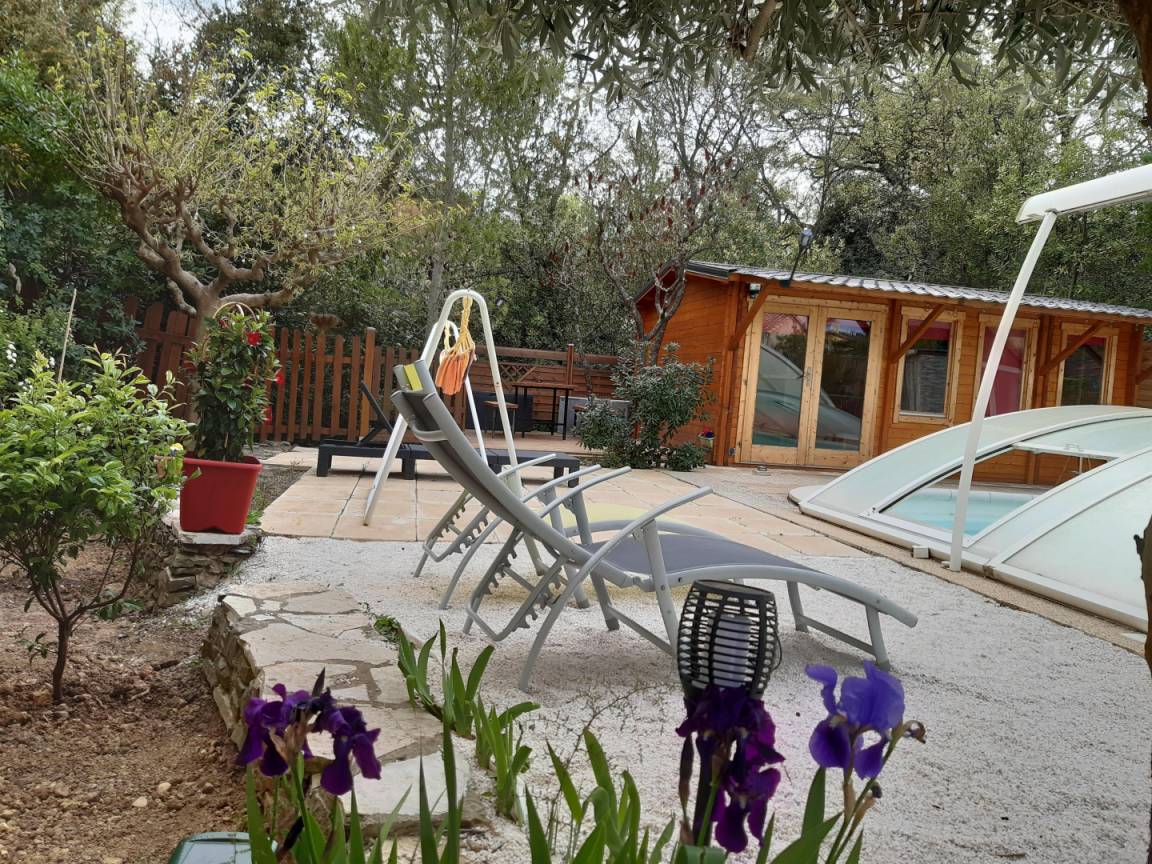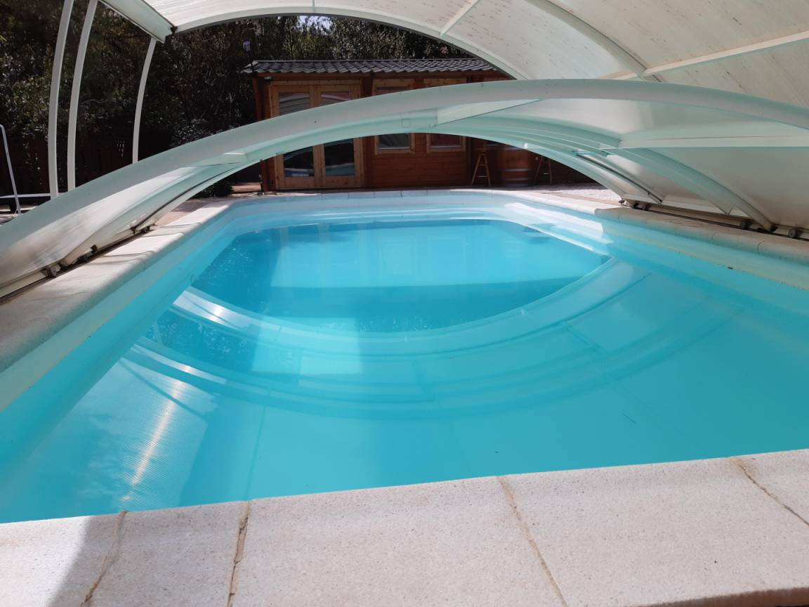 „Concept en bois situé à proximité d'un lotissement et d'aboiement d'un chien de voisin ce n'est pas le mieux si l'on ne profite pas de la région à visiter durant la journée. Le soir et le matin cela reste gênant. Le strict minimum en équipement ménager pour répondre sans doute aux critères de location mais pas très fonctionnel (premier prix pour les couverts par exemple), voire dangereux comme l'utilisation et le branchement de la bouilloire électrique. Pour un séjour en été la piscine est un plus, moins hors saison. A noter un très bon accueil du propriétaire et sa disponibilité durant la semaine passée.“